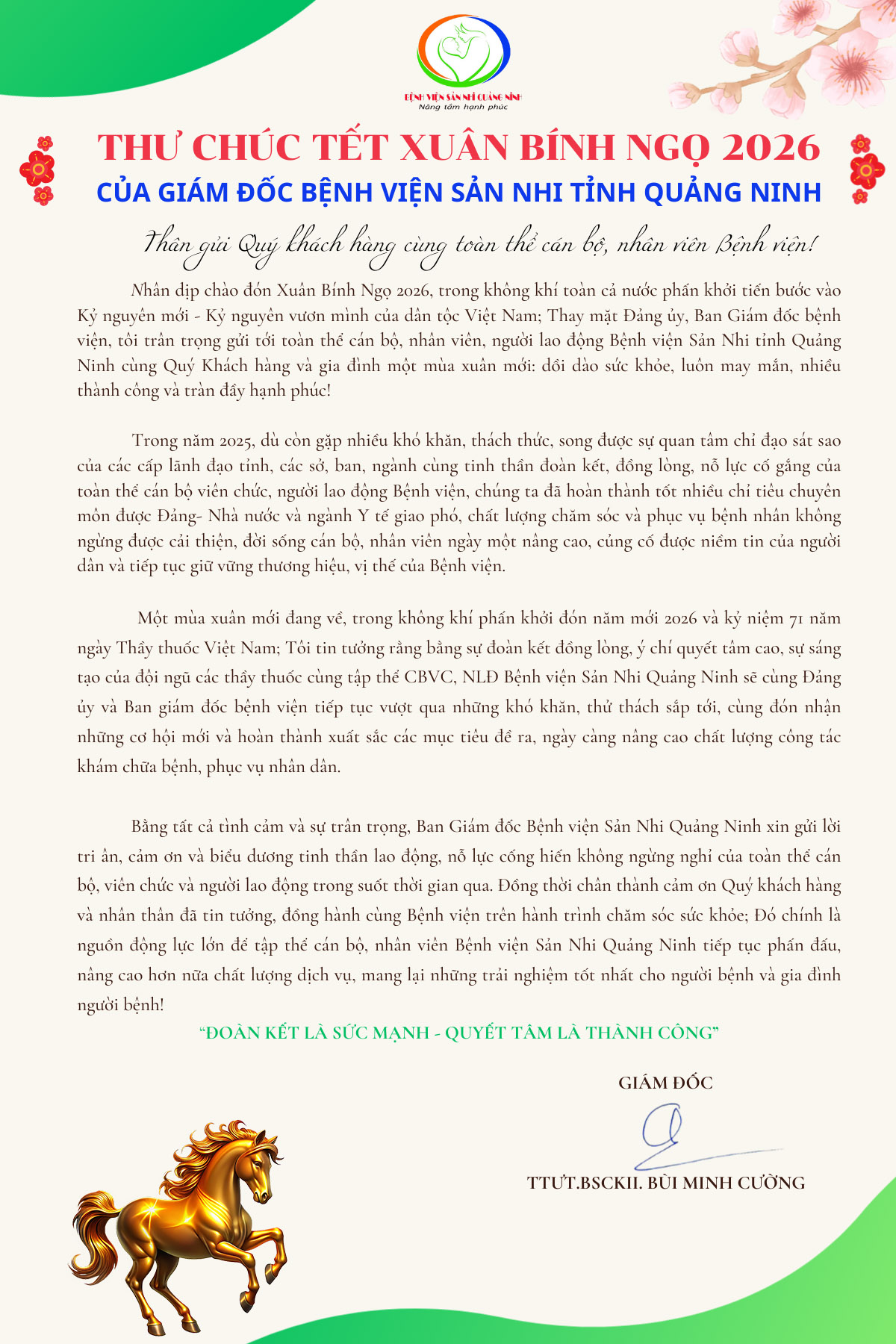 Ngày 23/2/2026 trong không khí vui tươi, phấn khởi chào đón mùa Xuân mới, các cán bộ, nhân viên, người lao động Bệnh viện Sản Nhi Quảng Ninh cùng nhau quây quần gặp mặt gửi những lời chúc sức khỏe, may mắn, thành công trước giờ làm việc, đồng thời phát động phong trào hăng hái thi đua lao động và Tết trồng cây, nhân dịp Khai xuân đầu năm mới Bính Ngọ đầy ý nghĩa.