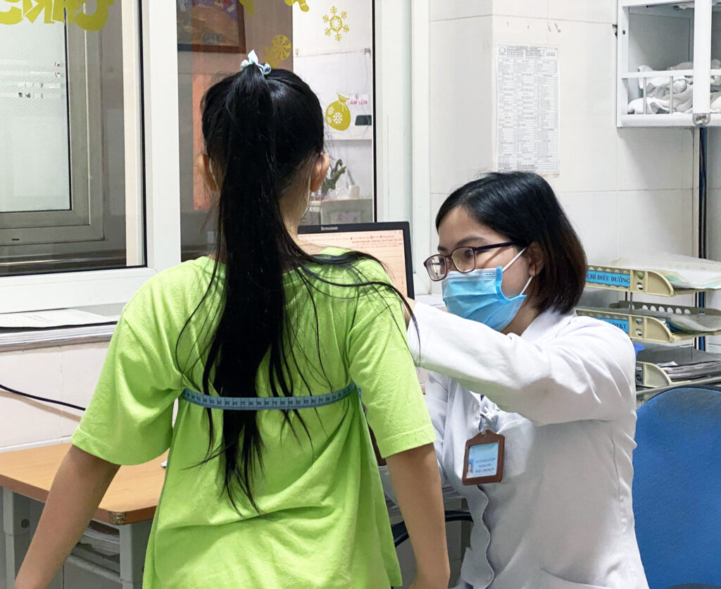 Mới 9 tuổi, học lớp 4, bé L.N.M đã có những sự phát triển vượt trội khi so sánh với các chỉ số thông thường của lứa tuổi. Chiều cao đã đạt 1m49, nặng 55kg, vòng ngực 95. May mắn, sau hơn 1 năm điều trị, các chỉ số hormone của bé đã duy trì ở mức ổn định.