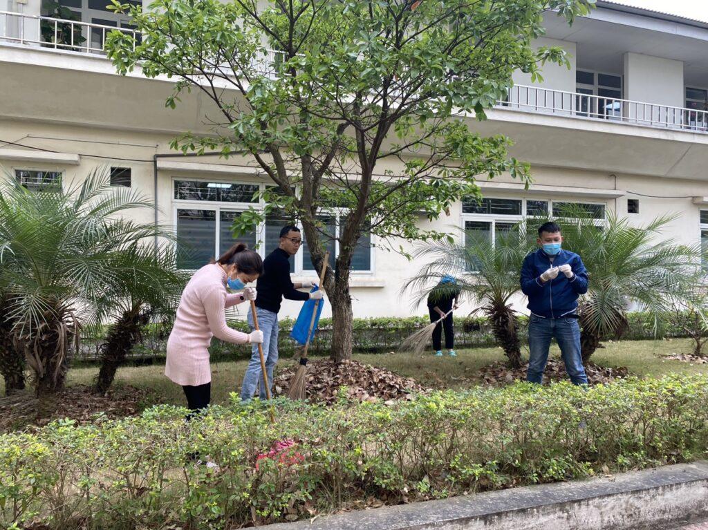 Đoàn thanh niên Bệnh viện Sản Nhi tổ chức dọn vệ sinh cảnh quan bệnh viện đón Tết Quý Mão 2023