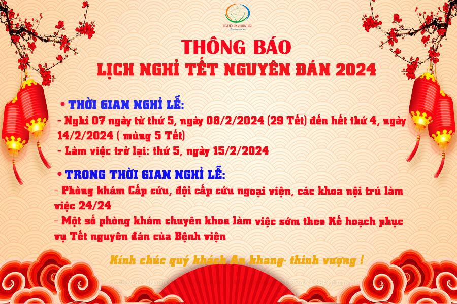 THÔNG BÁO LỊCH NGHỈ TẾT NGUYÊN ĐÁN 2024
