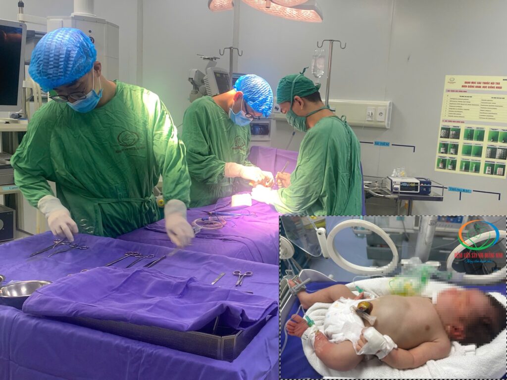 Phẫu thuật cấp cứu thành công cho bệnh nhi sơ sinh 02 ngày tuổi mắc bệnh lý hiếm gặp (ống rốn tràng) cùng đại tiện ra phân tại rốn và hậu môn