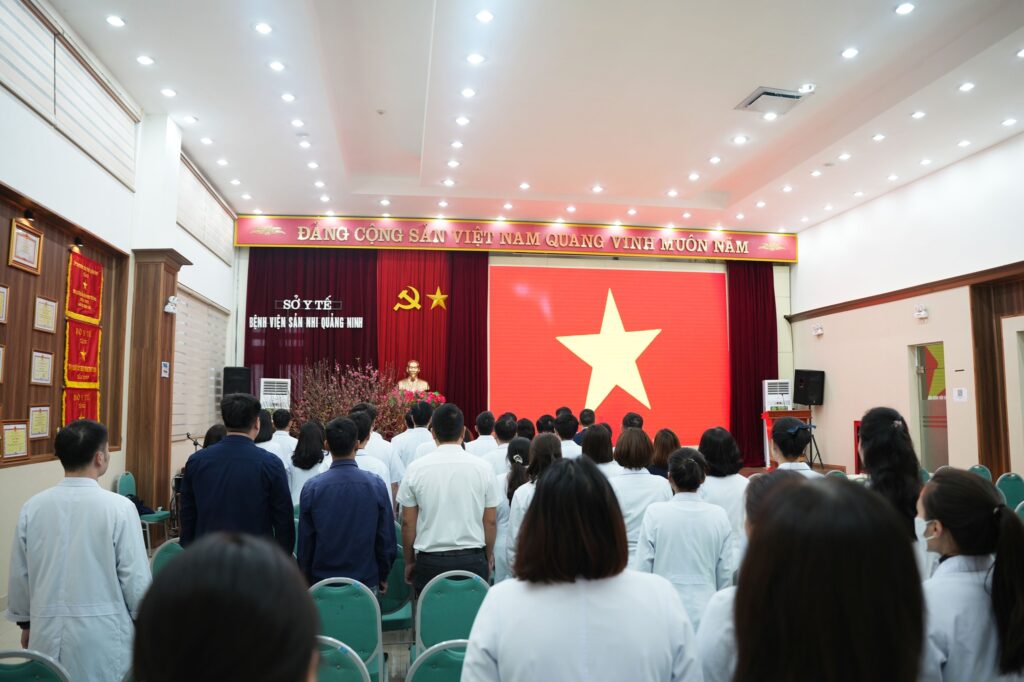 Không khí trang nghiêm, dâng trào lòng yêu nước, niềm tự hào dân tộc, sự biết ơn thế hệ đi trước trong Lễ chào cờ đầu tuần tại Bệnh viện Sản Nhi Quảng Ninh