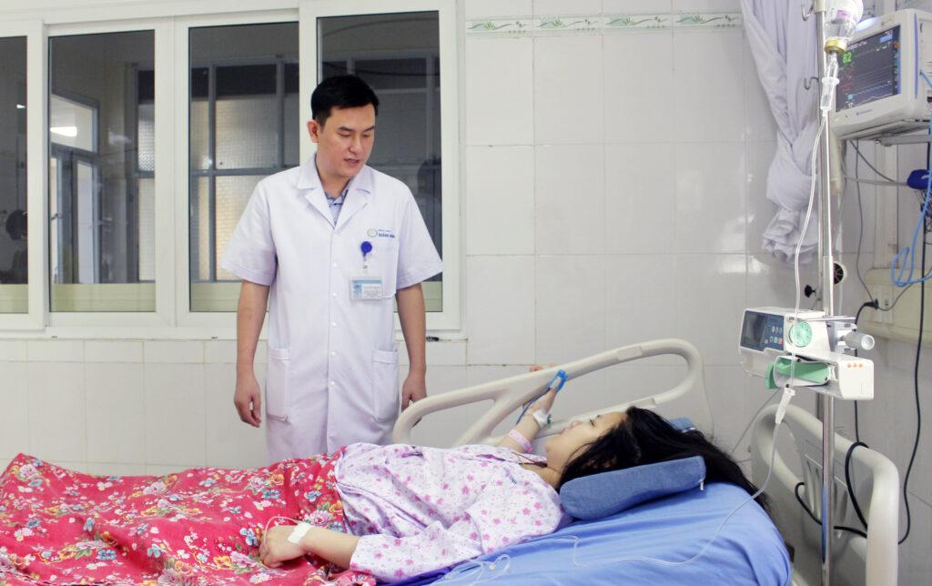 BsCKI. Trần Quý Khánh thăm khám cho bệnh nhân sau mổ tại khoa Hồi sức tích cực