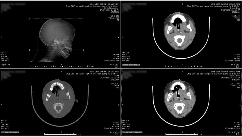Tối ngày 08/05/2022, Bệnh Viện Sản Nhi Quảng Ninh tiếp nhận bệnh nhi D. T .T 7 tuổi, được chuyển tuyến từ TTYT huyện Bình Liêu trong tình trạng lơ mơ, gọi hỏi không đáp ứng, co giật liên tục khó cắt cơn. Bệnh nhân được xử trí an thần cắt cơn giật, đặt ống nội khí quản, thở máy, chụp cắt lớp vi tính sọ não, chọc dịch não tủy, làm các cận lâm sàng chẩn đoán và được các bác sĩ xác định trong tình trạng động kinh – Viêm não màng não biến chứng phù não lan tỏa 2 bán cầu, tăng áp lực nội sọ nặng/ Viêm phổi/ Tim bẩm sinh thông liên thất/ Suy dinh dưỡng.
