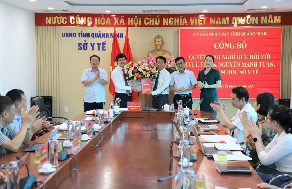 Ngày 1/7/2022, thừa ủy quyền của Chủ tịch Ủy ban nhân dân tỉnh Quảng Ninh, đồng chí Nguyễn Trọng Diện, Tỉnh ủy viên, Giám đốc Sở Y tế đã trao quyết định số 956/QĐ-UBND của UBND tỉnh về công tác cán bộ đối với đồng chí Nguyễn Mạnh Tuấn, Phó Giám đốc Sở Y tế Quảng Ninh, nghỉ hưu theo chế Ngày 1/7/2022, thừa ủy quyền của Chủ tịch Ủy ban nhân dân tỉnh Quảng Ninh, đồng chí Nguyễn Trọng Diện, Tỉnh ủy viên, Giám đốc Sở Y tế đã trao quyết định số 956/QĐ-UBND của UBND tỉnh về công tác cán bộ đối với đồng chí Nguyễn Mạnh Tuấn, Phó Giám đốc Sở Y tế Quảng Ninh, nghỉ hưu theo chế độ