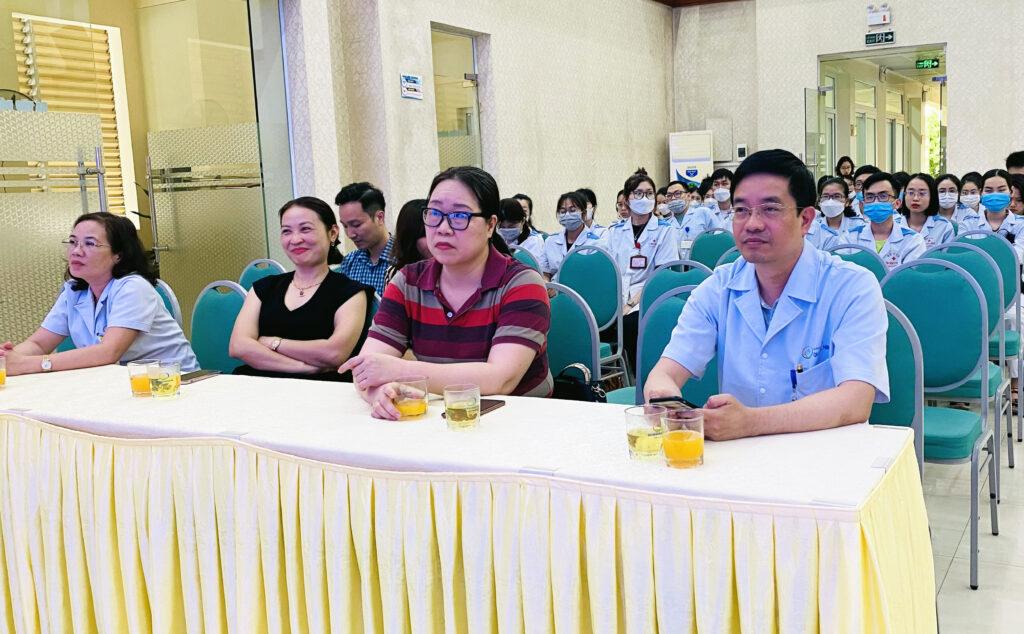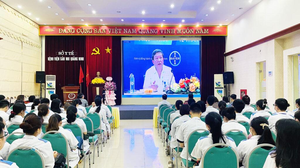 Về phía điểm cầu BV Sản Nhi Quảng Ninh có BSCKII. Bùi Minh Cường- GĐ Bệnh viện, đồng chủ tọa; BSCKII. Đỗ Duy Long- PGĐ BV; Ths.BS. Phạm Thị Hằng- PGĐ BV, cùng các đồng chí trưởng, phó khoa, bác sĩ từ các chuyên khoa Phụ- Sản trực thuộc Bệnh viện Sản Nhi, BV Việt Nam- Thụy Điển Uông Bí, BV Đa khoa Hạ Long, tại các điểm cầu đơn vị y tế trong tỉnh và các sinh viên tham gia thực tập chuyên ngành Sản khoa tại BV Sản Nhi tham gia