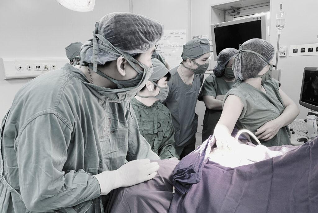 Xác định đây là trường hợp cấp cứu nặng, các bác sĩ đã triển khai báo động đỏ toàn viện, bệnh nhân sốc giảm thể tích, thiếu máu nặng, băng huyết sau phá thai bằng thuốc, vết mổ đẻ cũ. Bệnh nhân được chỉ định hồi sức tích cực kèm theo xử trí tổn thương tại buồng tử cung. Trong thời gian đó bệnh viện thông báo, liên lạc tới tất cả cán bộ nhân viện trong viện và tình nguyện viên bên ngoài có cùng nhóm máu với bệnh nhân trực tiếp đến tham gia hiến máu bổ sung kịp thời lượng máu cần thiết phục vụ cấp cứu và điều trị cho bệnh nhân L.T. T. Sau thời gian điều trị tích cực, hiện tại sức khỏe bệnh nhân đã ổn định và đã được xuất viện.