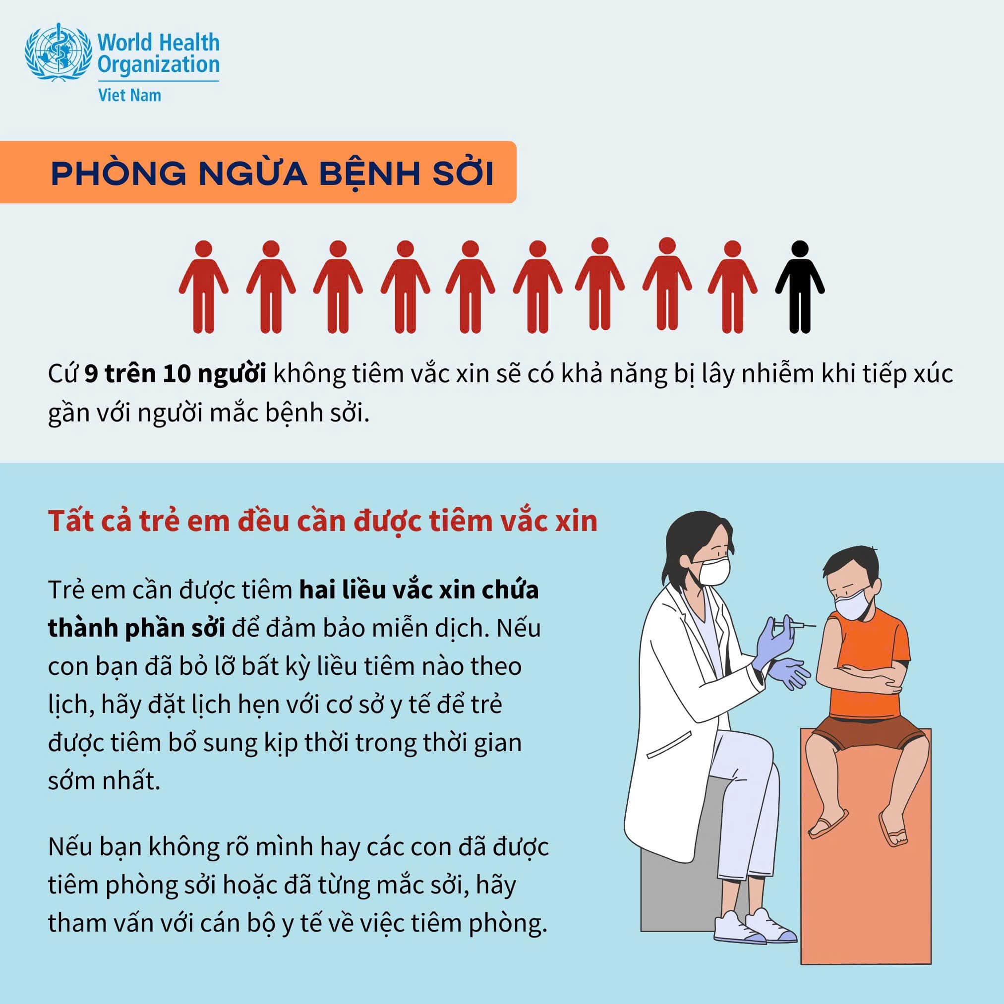 • Trẻ em cần được tiêm vắc-xin phòng sởi theo đúng lịch: