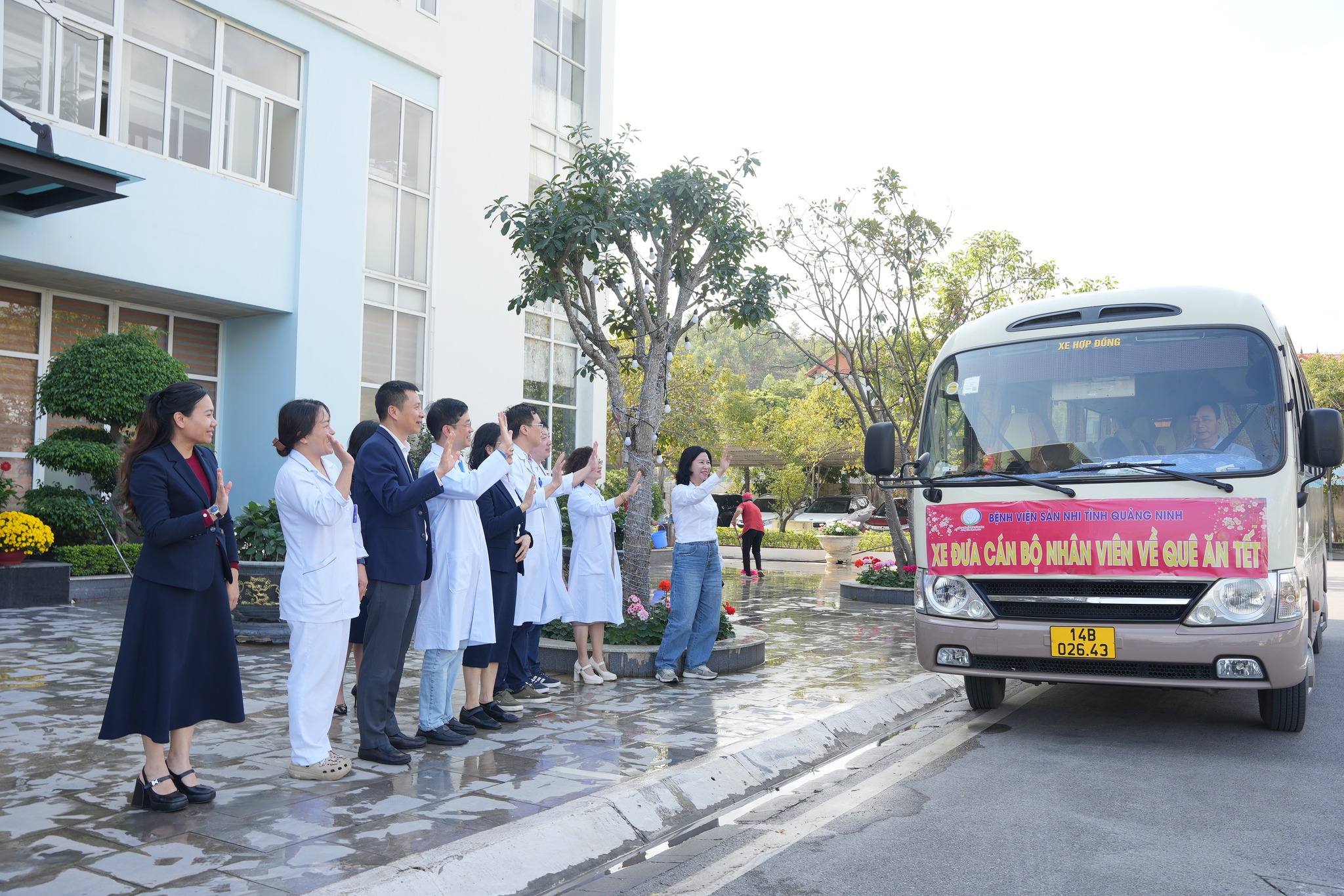Cuối buổi làm việc của ngày, Bệnh viện cũng bố trí sẵn sàng chuyến xe Tết, để cán cán bộ nhân viên có một hành trình thuận tiện nhất khi về quê ăn Tết cùng gia đình.