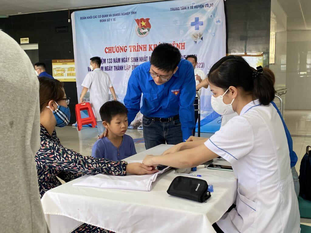 Cũng trong ngày 19/5/2023, tại huyện đảo Cô Tô, Đảng bộ Sở Y tế tổ chức Hội nghị bồi dưỡng kiến thức cho đội ngũ hớn 40 tuyên truyền viên thuộc Đảng bộ Sở Y tế; Song song với đó là Chương trình khám bệnh, cấp thuốc miễn phí, tặng quà cho nhân dân huyện Cô Tô do Đoàn thanh niên Sở Y tế phụ trách thực hiện. Theo đó, Đoàn thanh niên Sở Y tế đã khám sàng lọc, cấp phát thuốc miễn phí cho 150 người dân huyện Cô Tô, đồng thời tư vấn về các chế độ dinh dưỡng, sinh hoạt, hướng dẫn chăm sóc sức khoẻ cho người dân. Buổi tối cùng ngày là chương trình giao lưu nghệ thuật đặc sắc với chủ đề “Lời ca dâng Bác” đã vang lên những lời ca ấm nồng, đầy cảm xúc ca ngợi quê hương đất nước, con người Việt Nam và lòng biết ơn, thành kính dâng lên Bác Hồ kính yêu. Trong chương trình, Đảng uỷ Sở Y tế đã trao tặng 10 suất quà cho con em cán bộ nhân viên y tế huyện Cô Tô có hoàn cảnh khó khăn vươn lên trong cuộc sống.
