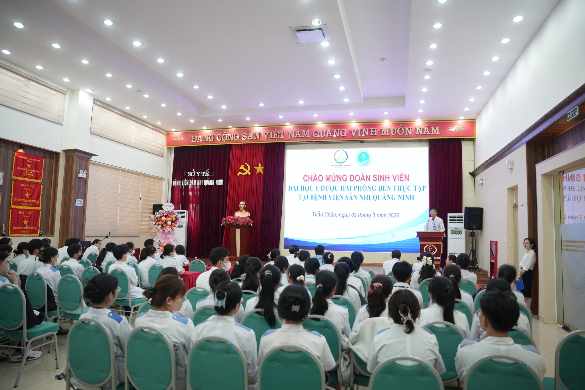 Thực hiện chương trình phối hợp giữa Trường Đại học Y Dược Hải Phòng và Bệnh viện Sản Nhi Quảng Ninh; Sáng ngày 02/3/2026, tại hội trường lớn, Bệnh viện Sản Nhi Quảng Ninh đã diễn ra buổi Lễ tiếp nhận 58 sinh viên Trường Đại học Y Dược Hải Phòng (gồm 24 sinh viên khối Sản khoa và 34 sinh viên khối Nhi khoa) đến thực tập tại Bệnh viện.