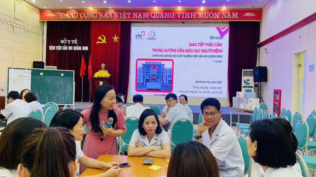 Trong 02 ngày từ 10-11/5, Bệnh viện Sản Nhi Quảng Ninh đã tổ chức chương trình tập huấn: “Giao tiếp thấu cảm thông qua hoạt động hướng dẫn – Giáo dục người bệnh hiệu quả” với sự hưởng ứng tham gia sôi nổi, nhiệt tình của đông đảo cán bộ chủ chốt, các cán bộ, nhân viên y tế trong toàn viện dưới sự hướng dẫn của đồng chí giảng viên, chuyên gia giàu kinh nghiệm đến từ Trung tâm đào tạo cải tiến CHIR.