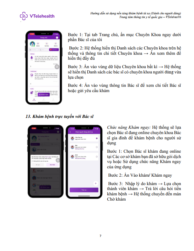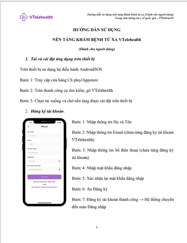 Để được tư vấn khám bệnh từ xa, người dân sử dụng thiết bị thông minh hệ điều hành Android/IOS tải ứng dụng Vtelehealth về thiết bị và cài đặt theo hướng dẫn.