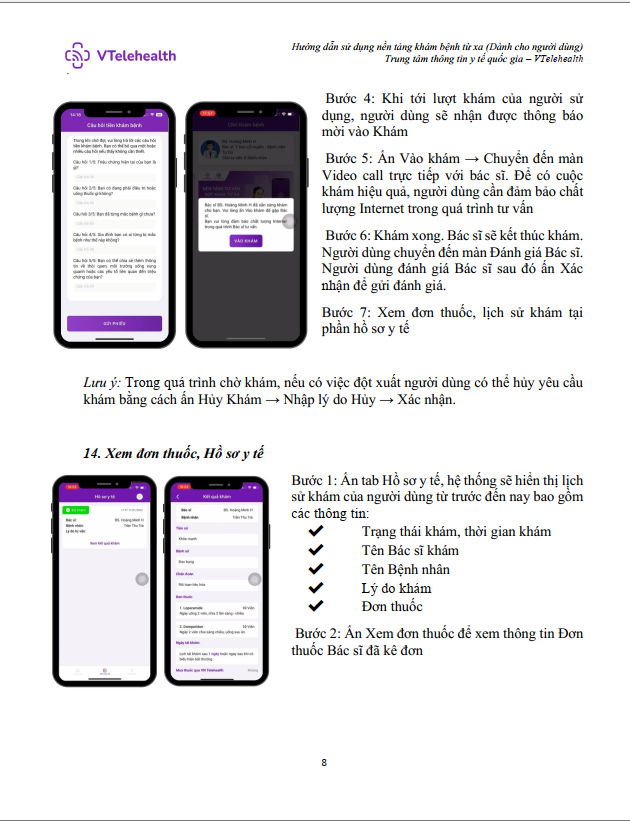 Người bệnh có thể đến khám theo hẹn đã đặt trước qua ứng dụng khám chữa bệnh từ xa, hoặc tự đến. Cán bộ y tế tại Trạm y tế đánh giá tình trạng người bệnh và thực hiện buổi tư vấn khám chữa bệnh từ xa nếu cần và nếu có sự đồng thuận của người bệnh.