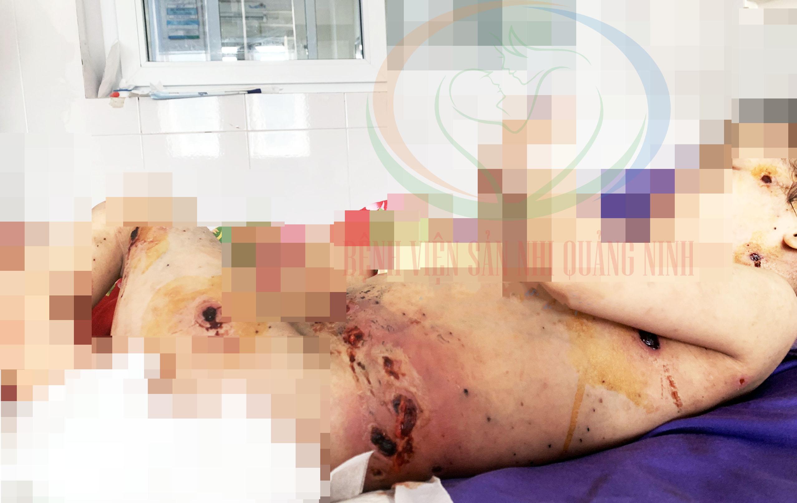 Tại bệnh viện Sản Nhi Quảng Ninh mới đây đã tiếp nhận điều trị cho một bệnh nhi 5 tuổi, thường trú tại huyện Cao Lộc, tỉnh Lạng Sơn, nhập viện trong tình trạng trẻ sốt cơn, ho, nổi ban, phỏng nước rải rác toàn thân, nhiều nốt loét, mụn mủ, da vùng bụng, mạn sườn trái, lưng, đùi phải viêm sưng nề lan tỏa rộng bán kính 4-5cm quanh mụn. Theo khai thác bệnh sử, trẻ đã bị bệnh được 6 ngày trước khi vào viện.