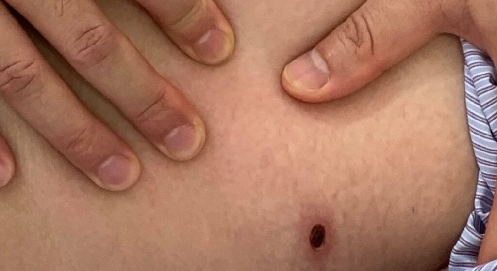 Qua thăm khám bác sĩ phát hiện một nốt đốt đã khô, đóng vảy đen điển hình do ấu trùng mò đốt ở vùng mặt trong cánh tay trái. Tiến hành hội chẩn chuyên khoa các bác sĩ chẩn đoán trẻ bị Viêm phế quản cấp và sốt mò. Qua chia sẻ từ Bác sỹ Nguyễn Thị Lan Linh: sốt do mò đốt là bệnh truyền nhiễm do vi khuẩn Rickettsia tsutsugamushi gây ra qua vật trung gian là ấu trùng mò. Mò thường sống ở các bụi cây, bụi cỏ ẩm, nơi có bóng râm hoặc trong hang đá. Ấu trùng mò thường chọn đốt vào những vùng da mềm, ẩm như bộ phận sinh dục, hậu môn, bẹn, nách, cổ, rốn, mi mắt…