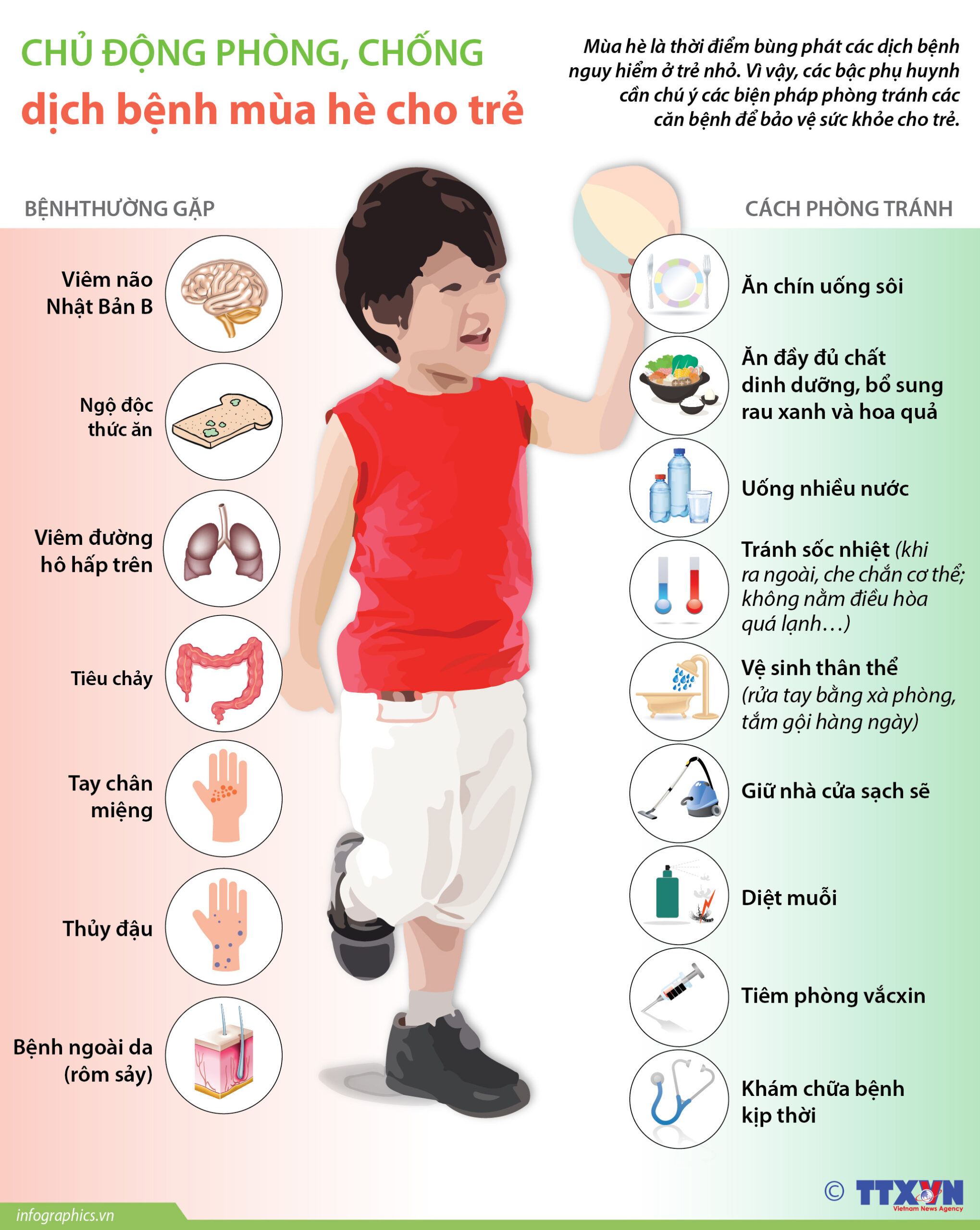 Theo các bác sĩ chuyên khoa nhi, nhìn chung, mùa hè là thời điểm rất thích hợp cho trẻ học tập, khám phá, vui chơi và hoạt động thể chất, tuy nhiên đây cũng chính là điều kiện thuận lợi cho nấm và các siêu sinh vật có hại phát triển, là môi trường ẩn nấp, sinh sôi và lây lan mầm bệnh rất nhanh. Nếu không được phát hiện và xử trí kịp thời, bệnh sẽ có thể chuyển biến nặng. Vì vậy, ngoài việc thực hiện vệ sinh an toàn thực phẩm, giữ môi trường sống lành mạnh, các bậc phụ huynh cũng cần chú ý theo sát trẻ. Khi thấy trẻ có dấu hiệu bất thường cần đưa trẻ đi khám tại các cơ sở y tế để được phát hiện và xử trí kịp thời.