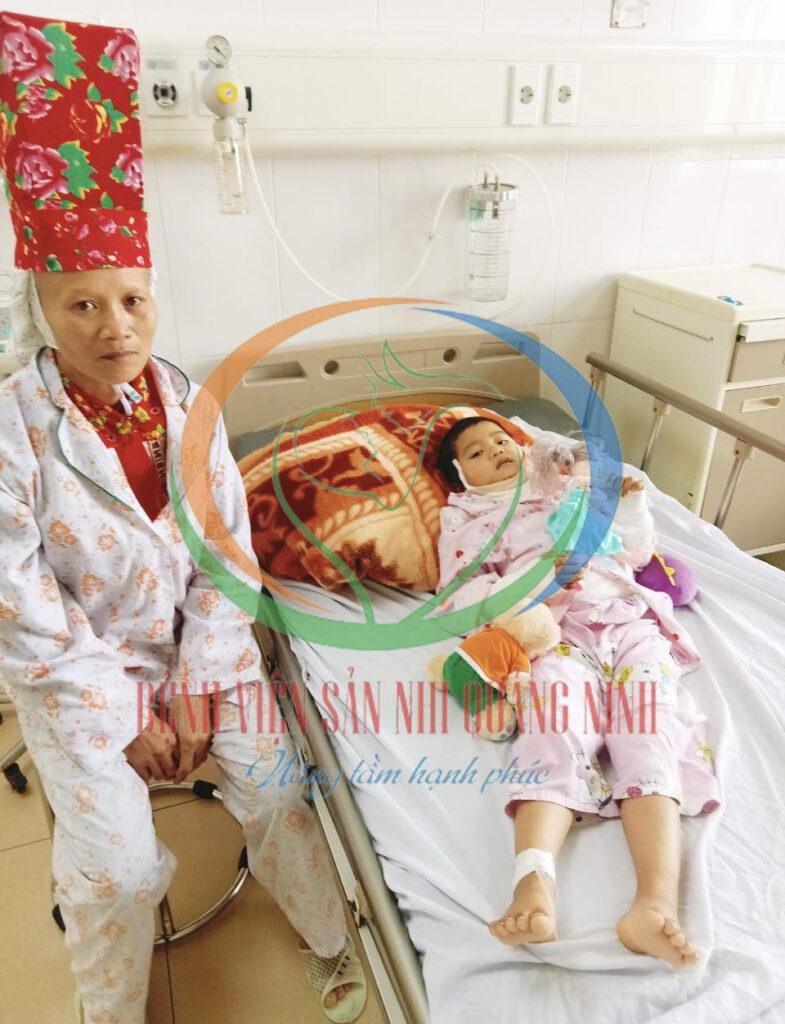 Các bác sĩ Khoa Ngoại & Chuyên khoa, Bệnh viện Sản Nhi tỉnh Quảng Ninh tiếp nhận điều trị cho bệnh nhi Chíu Thị Phượng (03 tuổi), dân tộc Dao, thường trú tại huyện Bình Liêu, tỉnh Quảng Ninh bị bỏng nhiệt do lửa cháy vùng cổ – ngực – lưng- bụng – tay, chân độ 2-3, diện tích bỏng 17% cơ thể.