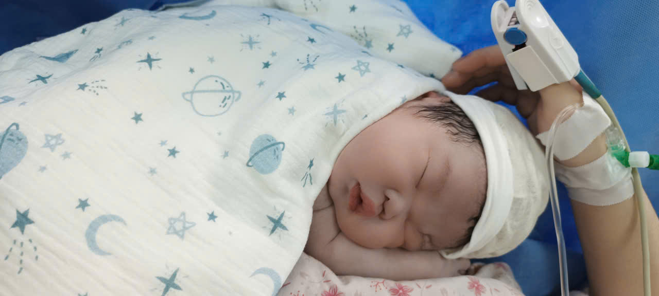 Bé TRAI cân nặng 3600gram, là con sản phụ 23 tuổi, hộ khẩu tại phường Phong Cốc, tỉnh Quảng Ninh, mang thai chuyển dạ lần đầu, thai 39 tuần 6 ngày, ngôi đầu, sinh bằng phương pháp sinh mổ. Sau sinh, cả hai mẹ con đều ổn định, bé khóc to, phản xạ tốt, được các bác sĩ sơ sinh đón, chăm sóc và cho ghép da kề da với mẹ ngay sau đó.