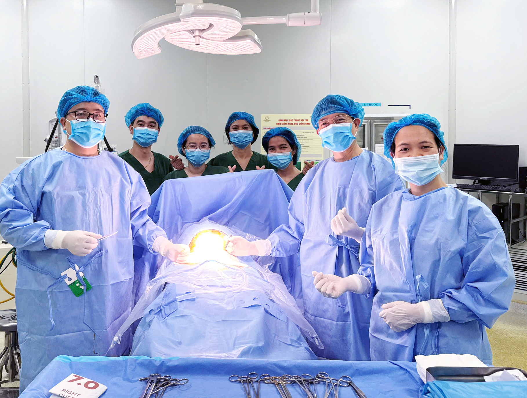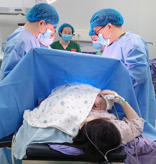 Kíp mổ do BSCKII. Đỗ Duy Long- Phó Giám đốc bệnh viện cùng các bác sĩ, kỹ thuật viên các khoa Sản, Gây mê hồi tỉnh và Sơ sinh thực hiện