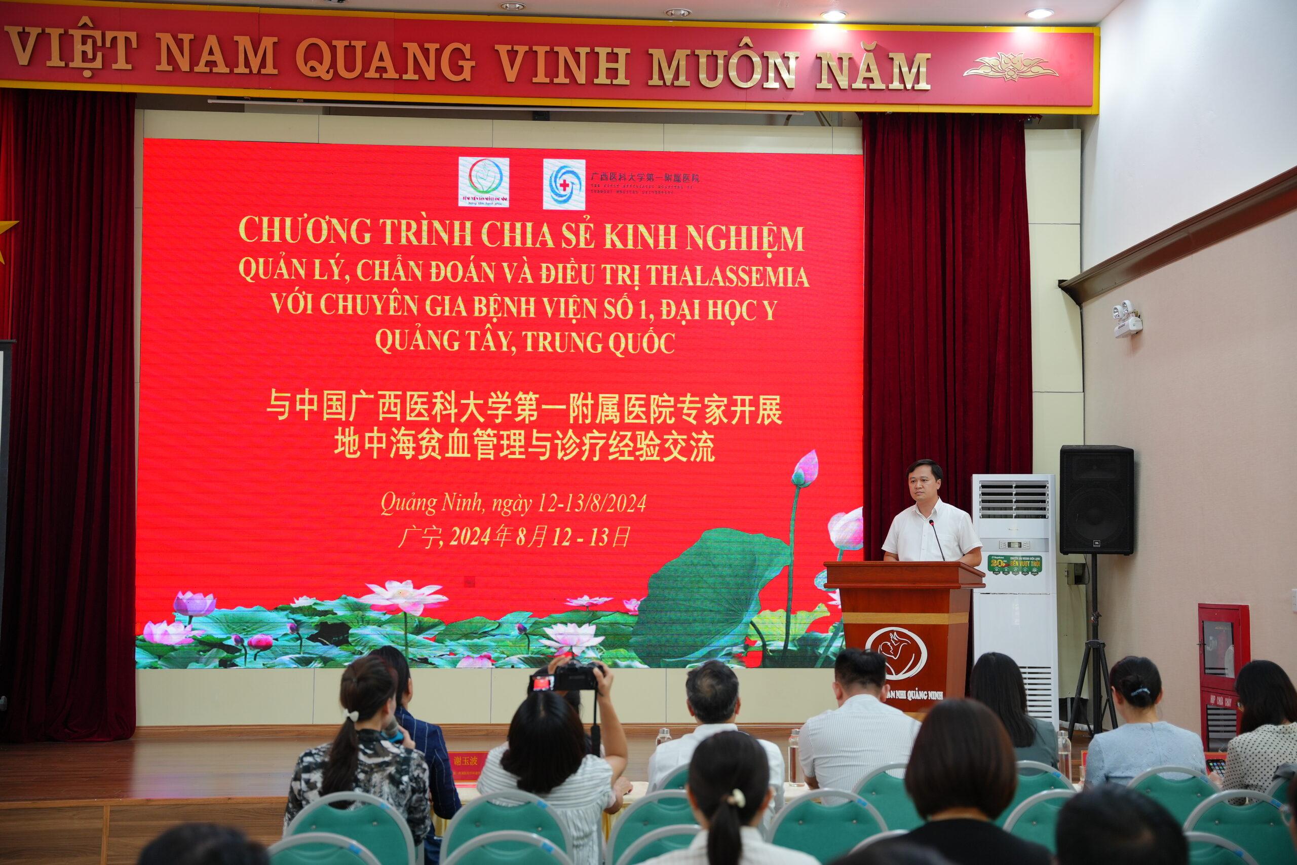 Phát biểu tại chương trình, đồng chí Bùi Mạnh Hùng- Phó Giám đốc Sở Y tế gửi lời chào và bày tỏ vui mừng trước sự góp mặt của các chuyên gia đến từ Bệnh viện Số 1, Đai Học Y Quảng Tây, Trung Quốc cũng như các đồng chí Lãnh đạo, đại diện đến từ các đơn vị y tế toàn tỉnh; Đồng thời, đồng chí Phó Giám đốc Sở nhấn mạnh Lãnh đạo Sở Y tế Quảng Ninh rất quan tâm, luôn chỉ đạo sát sao cũng như tạo điều kiện tối đa cho các đơn vị y tế trong việc quản lý, chẩn đoán và điều trị bệnh Thalassemia và đánh giá cao chương trình chia sẻ kinh nghiệm lần này là một sự kiện quan trọng để các chuyên gia y tế giữa 2 bên cùng nhau trao đổi, hợp tác và cập nhật những tiến bộ mới nhất trong việc chẩn đoán và điều trị căn bệnh Thalassemia, góp phần nâng cao chất lượng chăm sóc sức khỏe cho cộng đồng tại tỉnh Quảng Ninh.
