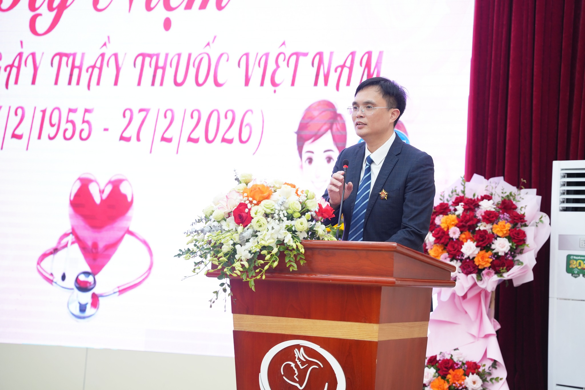 Phát biểu chúc mừng Ngày thầy thuốc Việt Nam, BSCKII. Bùi Minh Cường – Giám đốc Bệnh viện bày tỏ niềm tự hào, ghi nhận với những thành tích ấn tượng của Bệnh viện Sản Nhi Quảng Ninh đạt được trong thời gian qua nhờ sự quan tâm chỉ đạo của lãnh đạo UBND tỉnh, lãnh đạo Sở y tế, các sở ban ngành, địa phương… cùng sự cố gắng, nỗ lực, cống hiến hết mình của toàn thể đội ngũ cán bộ, nhân viên y tế và người lao động bệnh viện; Đặc biệt đồng chí Giám đốc Bệnh viện gửi lời tri ân sâu sắc tới các đồng chí Nguyên lãnh đạo và các cán bộ đã nghỉ hưu theo chế độ của Bệnh viện, những người đã công tác tại Bệnh viện Sản Nhi từ những ngày đầu Bệnh viện mới thành lập, trải qua nhiều khó khăn để để đặt nền móng vững chắc và định hướng cho sự phát triển mạnh mẽ của Bệnh viện sau này.