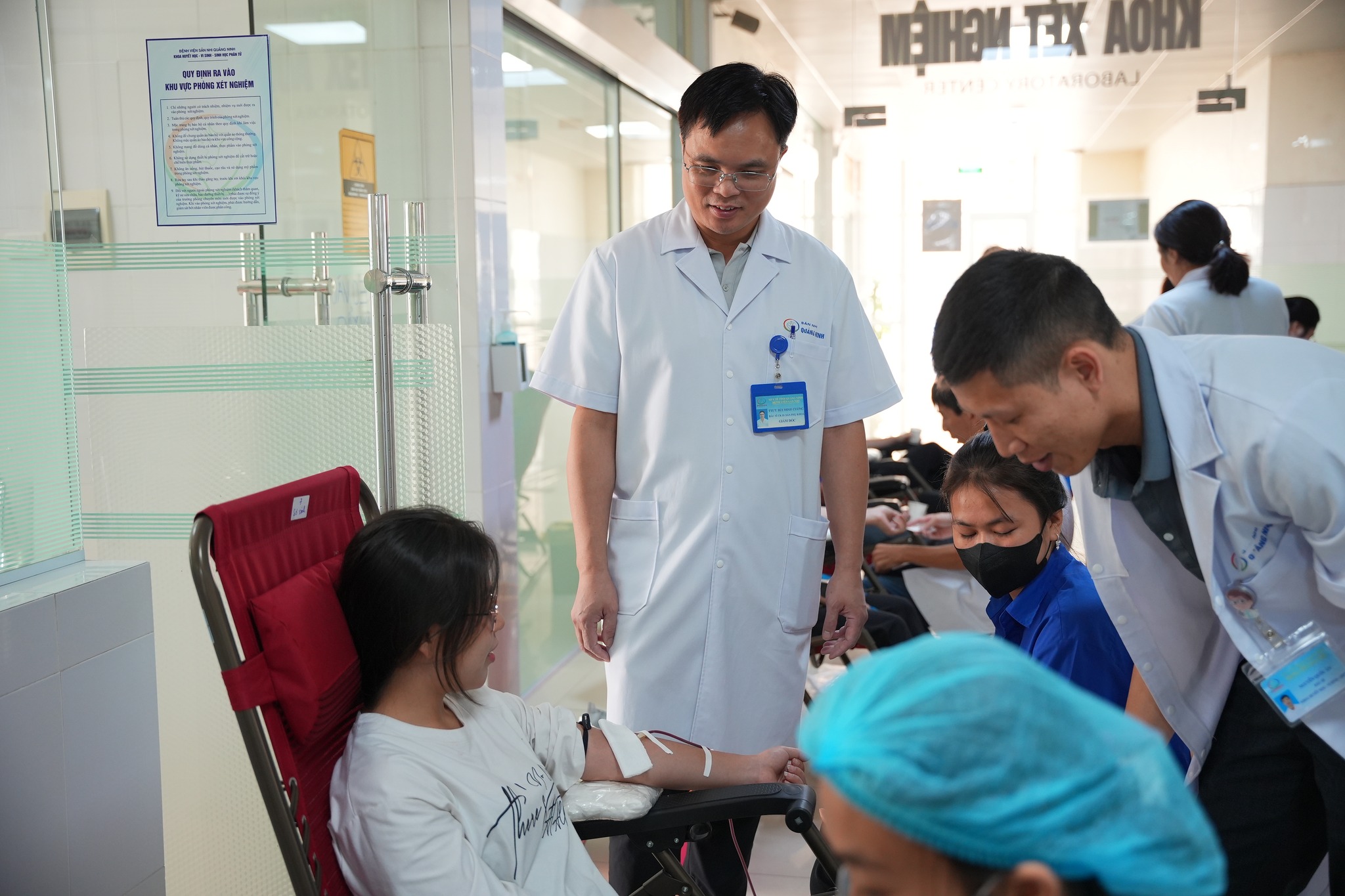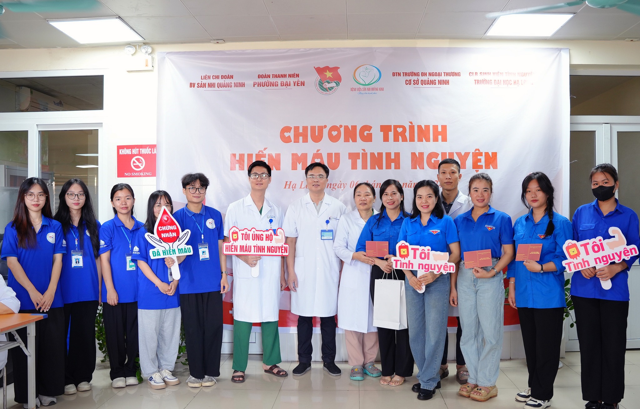 Sáng ngày 06/10, tại Khoa Huyết Học- Vi sinh- Sinh học phân tử – Bệnh viện Sản Nhi tỉnh Quảng Ninh, Liên chi đoàn Thanh niên Bệnh viện phối hợp với Đoàn thanh niên phường Đại Yên, Đoàn thanh niên trường ĐH Ngoại thương (cơ sở Quảng Ninh), CLB sinh viên tình nguyện trường ĐH Hạ Long đã tổ chức Chương trình “Hiến máu tình nguyện” nhằm kịp thời bổ sung lượng máu cần thiết giúp bệnh viện cấp cứu, điều trị cho những bệnh nhân nặng đang từng ngày từng giờ chiến đấu với bệnh tật.