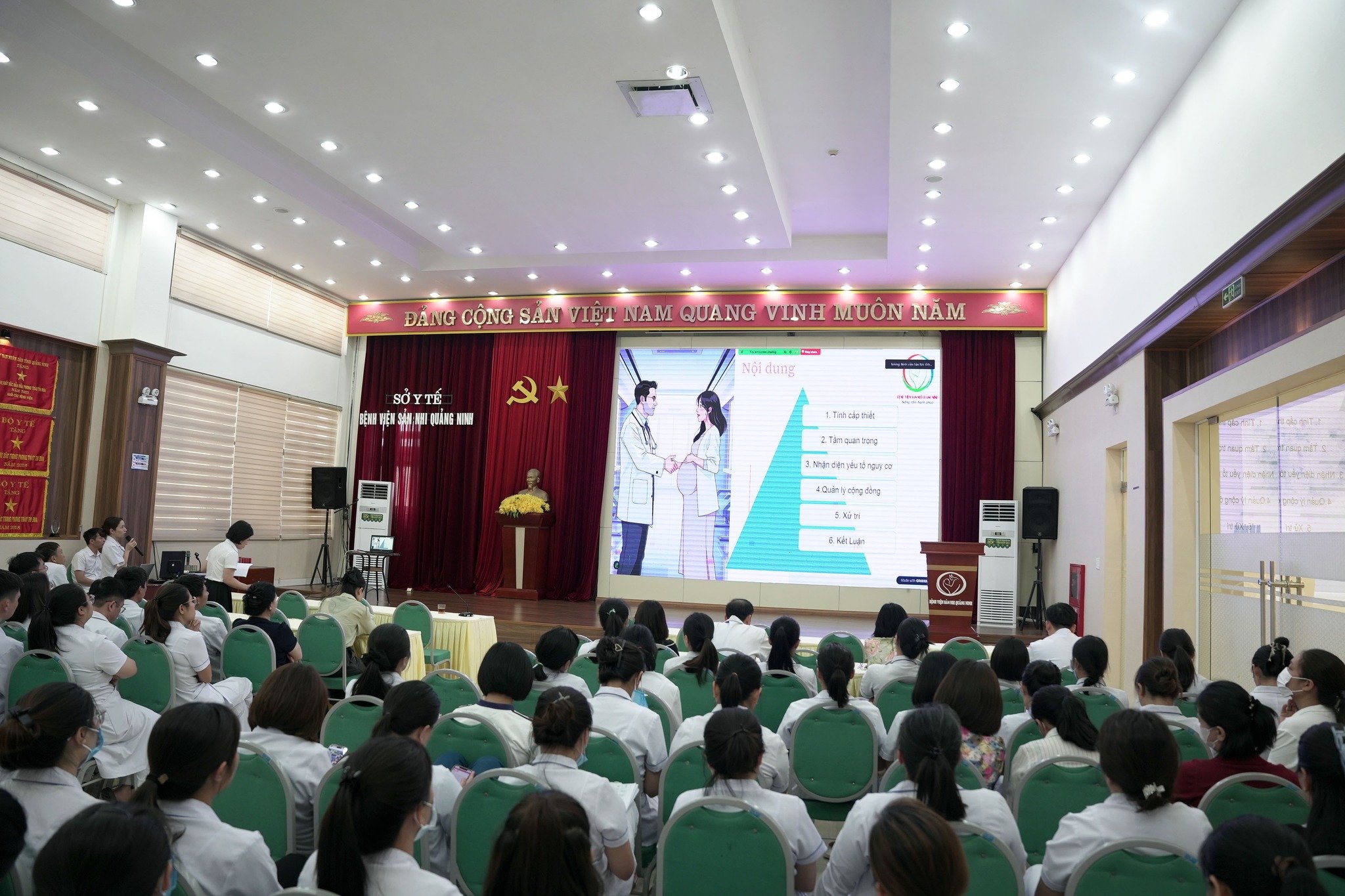 Chiều ngày 24/9/2025, tại Hội trường 1, Bệnh viện Sản Nhi Quảng Ninh đã diễn ra chương trình sinh hoạt khoa học trực tiếp kết hợp trực tuyến giữa các cán bộ, chuyên gia, nhân viên Bệnh viện Sản Nhi Quảng Ninh với gần 50 điểm cầu các bệnh viện, trung tâm, đơn vị y tế trên địa bàn tỉnh Quảng Ninh, với chủ đề “Chăm sóc an toàn cho mọi trẻ sơ sinh và trẻ nhỏ”