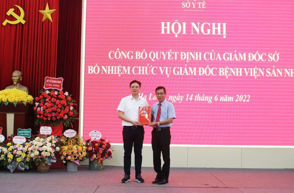 Đồng chí Nguyễn Tiến Hưng-PGĐ Sở Y tế trao Quyết định bổ nhiệm chức vụ Giám đốc Bệnh viện Sản Nhi Quảng Ninh cho Đ/c Bùi Minh Cường