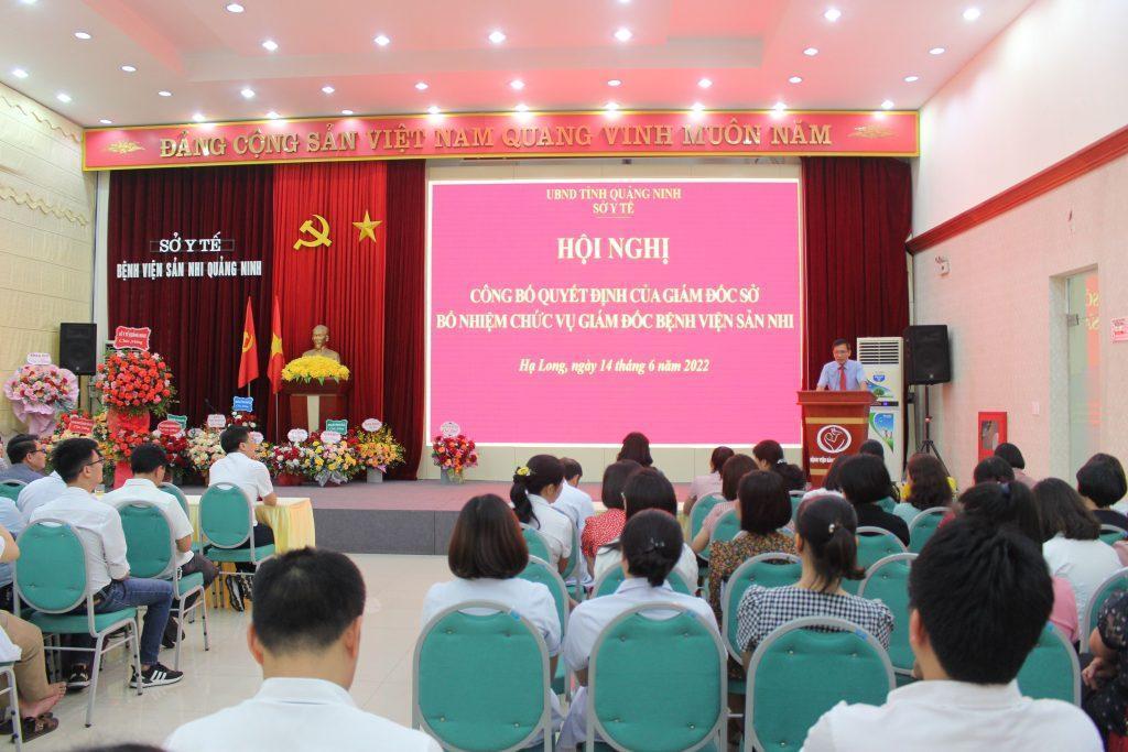 Tại Hội nghị, đồng chí Vũ Thị Mai – Chánh văn phòng Sở Y tế đã công bố Quyết định số 818/QĐ-SYT ngày 14/06/2022 của Giám đốc Sở Y tế về việc bổ nhiệm có thời hạn BSCKII Bùi Minh Cuờng – Phó giám đốc Phụ trách BV Sản Nhi giữ chức vụ Giám đốc Bệnh viện Sản Nhi Quảng Ninh kể từ ngày 14/06/2022.