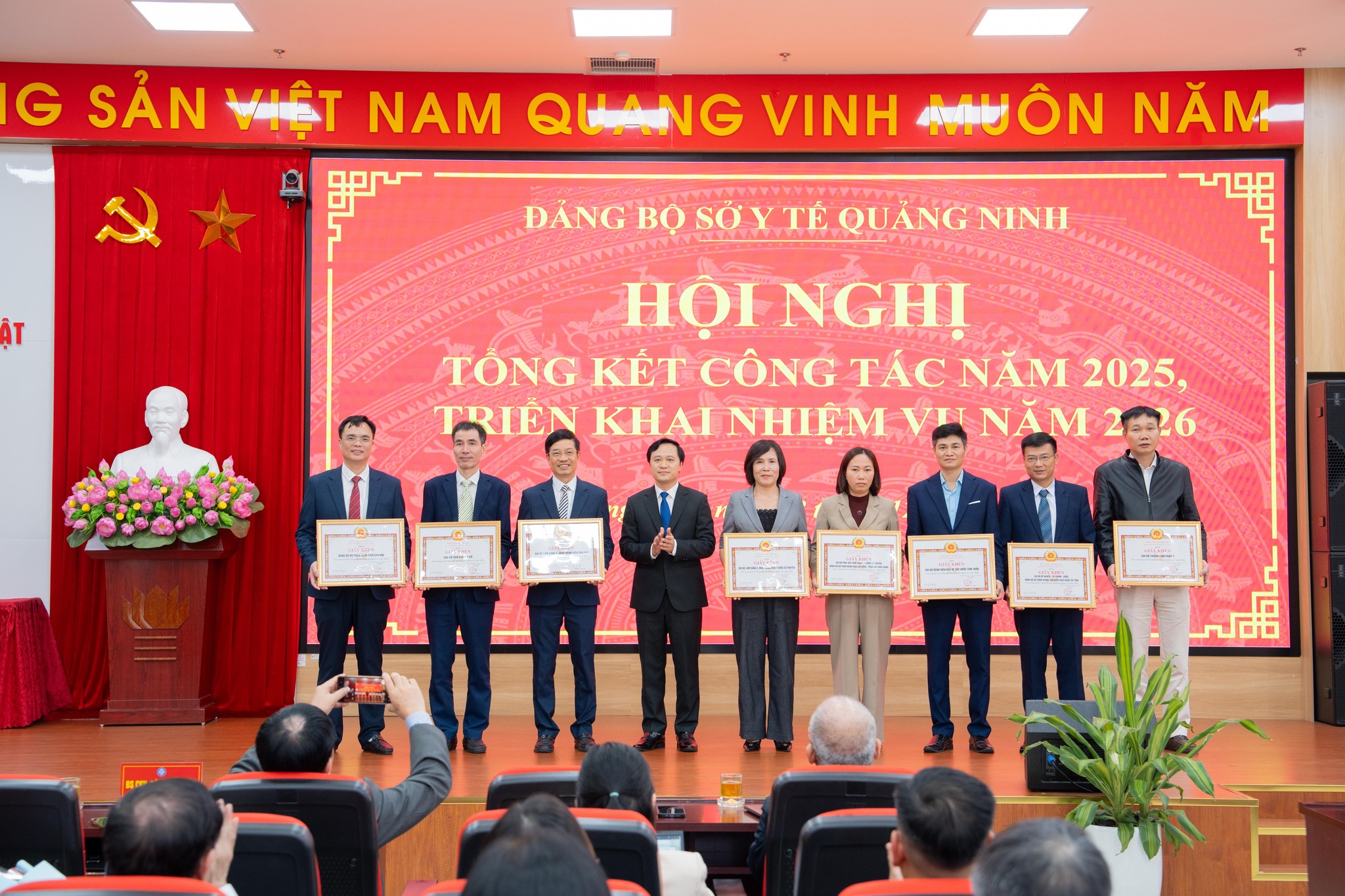 Nhân dịp này, Đảng ủy Sở Y tế Quảng Ninh đã tặng Giấy khen cho 8 Đảng bộ bộ phận, Chi bộ trực thuộc đạt danh hiệu “Hoàn thành xuất sắc nhiệm vụ” và 98 đảng viên “Hoàn thành xuất sắc nhiệm vụ năm 2025”.