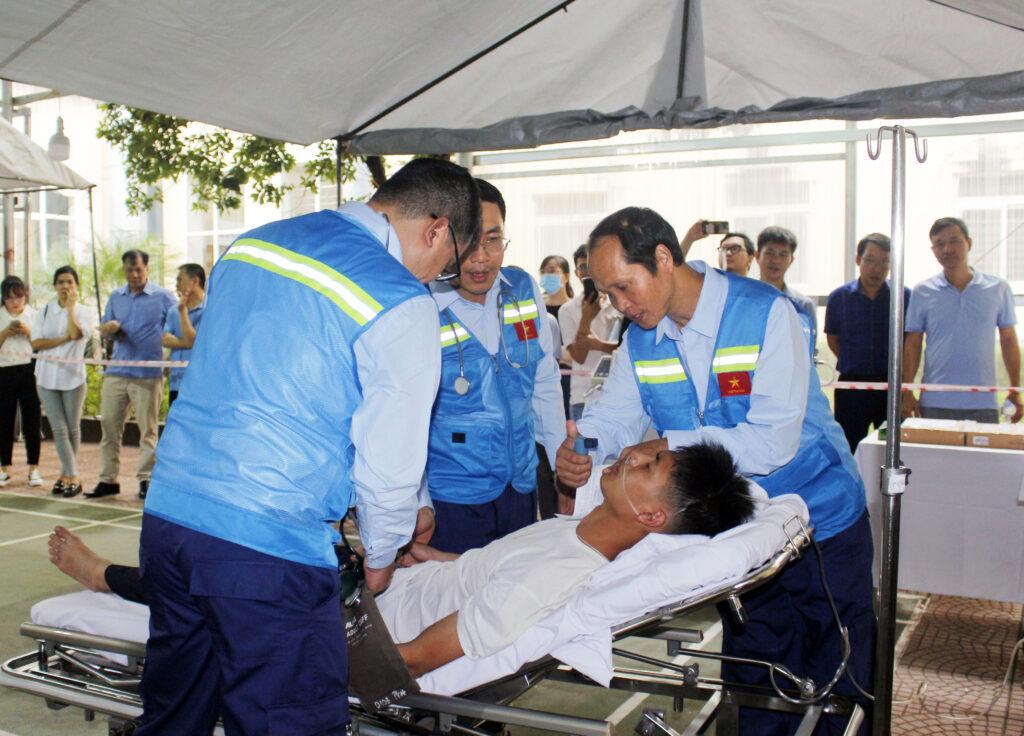 Dưới sự hướng dẫn của các giảng viên, chuyên gia từ Bộ Y tế, đội diễn tập đã đặt ra các tình huống khẩn cấp giả định để thực hiện triển khai các quy trình ứng phó cho từng đội hình đã được phân công chức năng nhiệm vụ từ Ban chỉ đạo tại chỗ với nhiều vị trí như: Tổ cấp cứu, tổ phân loại, tổ chăm sóc điều trị, khu vực cấp phát thuốc ..; Nhiều tình huống đã được các thành viên tham, các tổ thực thi phối hợp với nhau rất bài bản, thực hiện khẩn trương, đúng quy trình hướng dẫn của Bộ, đồng thời đoàn thảo luận rút kinh nghiệm nhiều vấn đề nhằm cải tiến, tận dung nhiều phương án, cơ sở vật chất tại chỗ, khắc phục khó khăn trong tình huống thiên tai giúp thực hiện hiệu quả công tác cứu nạn khẩn cấp khi có thiên tai, thảm họa xảy ra trên thực tế, hạn chế tối đa thiệt hại về người và của cũng như đảm bảo an toàn cho nhân viên thuộc lực lượng tham gia cứu hộ, cứu nạn.