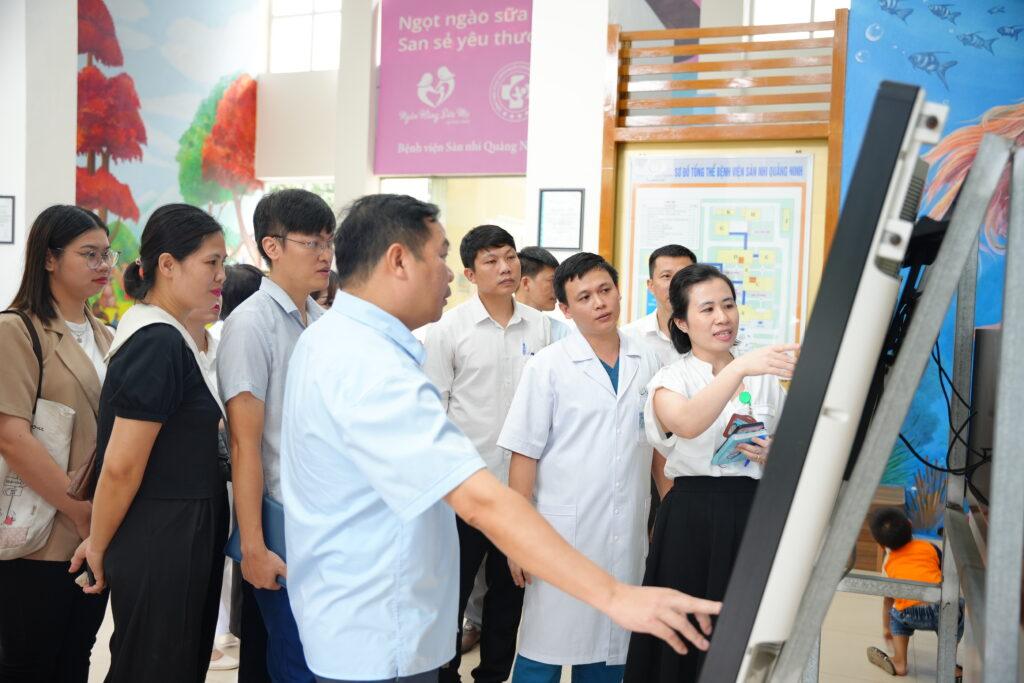 Tiếp đoàn công tác, về phía Bệnh viện Sản Nhi Quảng Ninh có BSCKII. Bùi Minh Cường – Giám đốc Bệnh viện; BSCKII. Đỗ Duy Long – Phó Giám đốc BV; Thạc sĩ, BS. Phạm Thị Hằng- Phó Giám đốc BV cùng đại diện lãnh đạo các khoa phòng trong toàn viện.
