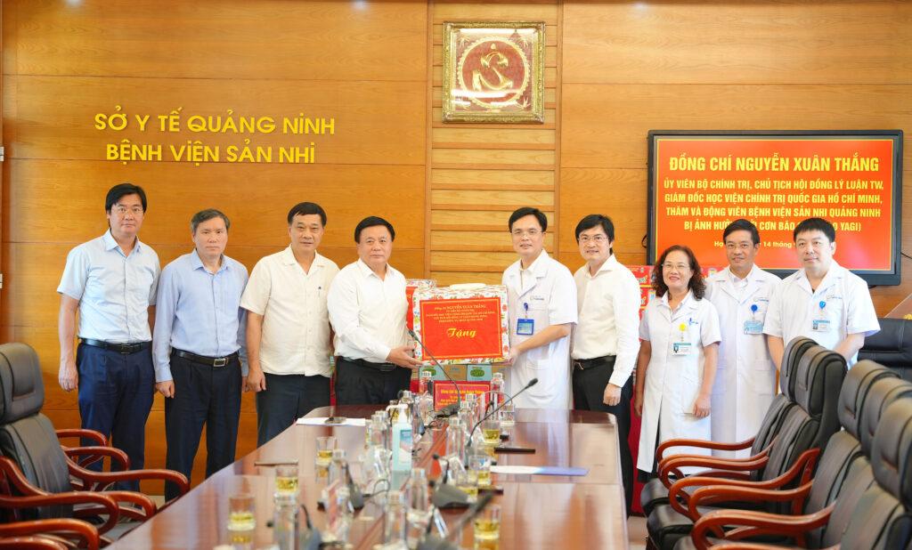 Trong chương trình công tác về thăm các đơn vị, địa phương bị ảnh hưởng của cơn bão số 3 (bão Yagi), ngày 14/9/2024, đồng chí Đồng chí Nguyễn Xuân Thắng, Ủy viên Bộ chính trị, Chủ tịch Hội đồng lý luận Trung ương, Giám đốc Học viện Chính trị Quốc gia Hồ Chí Minh đã có chuyến thăm và động viên đội ngũ y, bác sĩ Bệnh viện Sản Nhi Quảng Ninh.