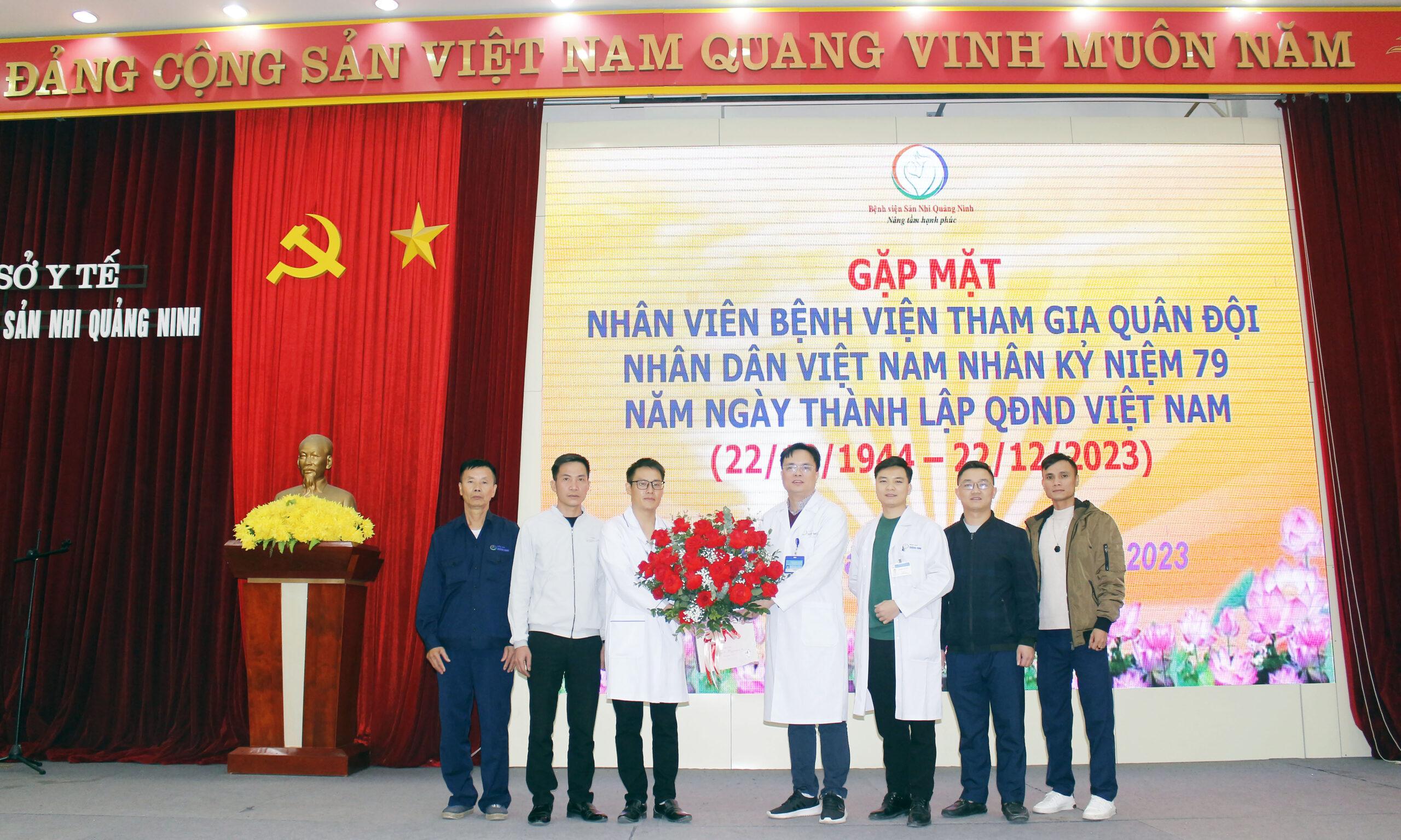 Chiều ngày 21/12, nhân dịp kỷ niệm 79 ngày thành lập QĐND Việt Nam ((22/12/1944-22/12/2023), và 34 năm Ngày Hội quốc phòng toàn dân (22/12/1989- 22/12/2023), Bệnh viện Sản Nhi Quảng Ninh tổ chức chương trình Gặp mặt, chúc mừng và ôn lại truyền thống Quân đội nhân dân Việt Nam giữa Ban giám đốc bệnh viện cùng các Cán bộ, viên chức, người lao động là các quân nhân chuyển hạng, sỹ quan dự bị, bộ đội xuất ngũ đã tham gia Quân đội Nhân dân Việt Nam và hiện đang trực tiếp công tác, đảm nhận nhiều vị trí quan trọng tại bệnh viện.