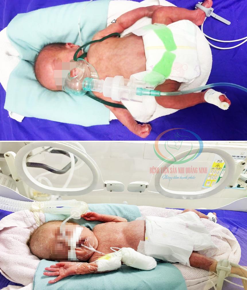 Quá trình điều trị các bé liên tục xuất hiện tình trạng xấu: suy hô hấp nặng, nhiễm khuẩn sơ sinh, rối loạn đông máu; nhiều khi tưởng chừng như không còn hi vọng khi 1 trong 2 bé sinh đôi xuất hiện tình trạng xuất huyết phổi nặng và không qua khỏi. Dù vậy, với tinh thần không bỏ cuộc, không giây phút nào chần chừ, tập thể đội ngũ y bác sĩ, điều dưỡng, KTV bệnh viện đã liên tục hồi sức tích cực và chăm sóc, điều trị cho các bé; Các bé được nằm lồng ấp, thở máy, bơm Surfactan, truyền máu, dùng kháng sinh, kháng nấm, chống ngưng thở, điều trị bệnh võng mạc ở trẻ đẻ non và được nuôi dưỡng qua đường truyền tĩnh mạch kết hợp nuôi ăn qua đường ruột tối thiểu giúp bé quen dần với phản xạ tiêu hóa, áp dụng thường quy KMC, sử dụng sữa mẹ thanh trùng từ Ngân hàng sữa mẹ với trường hợp mẹ không có sữa….Các thông số máy thở, kết quả xét nghiệm, chẩn đoán hình ảnh-thăm dò chức năng luôn được các bác sĩ theo dõi chặt chẽ và thường xuyên hội chẩn giữa ban lãnh đạo với chuyên các khoa: Sơ sinh, Ngoại- Chuyên khoa, Hồi sức tích cực, Dinh dưỡng tiết chế, Gây mê hồi tỉnh để đưa ra phác đồ chăm sóc và điều trị phù hợp nhất.