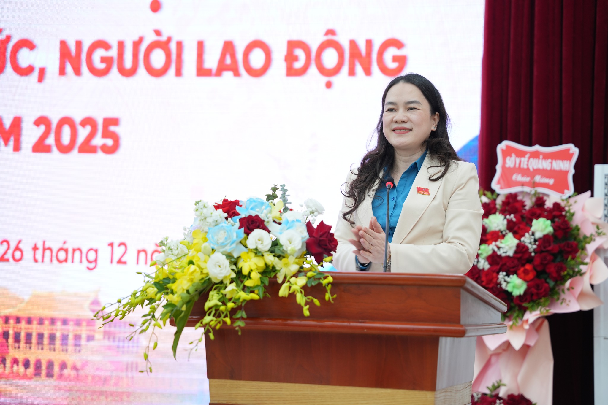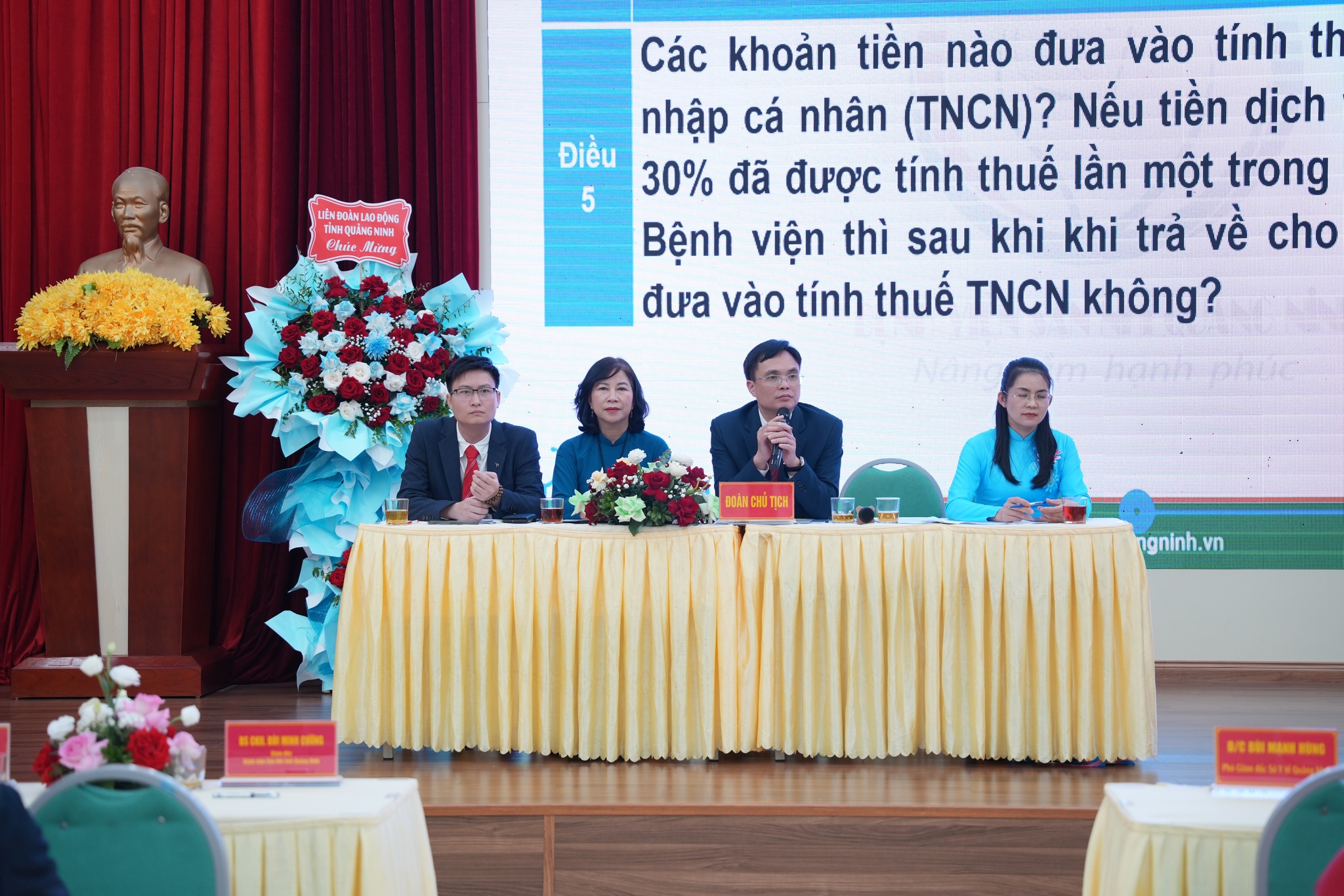 Tặng hoa và chúc mừng Hội nghị, đồng chí Bùi Mạnh Hùng- Phó Giám đốc Sở y tế và đồng chí Hoàng Thị Hồng Phấn- Phó chủ tịch Liên đoàn Lao động tỉnh biểu dương nỗ lực Bệnh viện Sản Nhi Quảng Ninh là 1 trong 4 bệnh viện (cũng là bệnh viện chuyên khoa duy nhất) của tỉnh đạt cấp chuyên sâu về chuyên môn kỹ thuật với số điểm đánh giá rất cao. Đồng thời cũng là bệnh viện đầu ngành của tỉnh, đi đầu trong phát triển các trung tâm kỹ thuật cao về hỗ trợ sinh sản, di truyền và chẩn đoán trước sinh…. Bên cạnh đó, đồng chí Phó Giám đốc Sở và Phó Chủ tịch Liên đoàn lao động cũng yêu cầu Bệnh viện Sản Nhi cần phát huy những thành công đạt được, tiếp tục làm tốt công tác đoàn thể, công đoàn cơ sở, để chăm lo, hỗ trợ kịp thời cho đời sống tinh thần, vật chất, đảm bảo quyền lợi chính đáng cho cán bộ, viên chức người lao động; Chủ động đề xuất những giải pháp sáng tạo, đổi mới, đột phá, tăng cường ứng dụng KHCN, hợp tác quốc tế, ứng dụng mạnh mẽ chuyển đổi số, AI, nâng cao y đức, đoàn kết, đồng lòng tiếp tục khẳng định là thương hiệu khám chữa bệnh của bệnh viện chuyên khoa về sản và nhi khoa trong tỉnh.