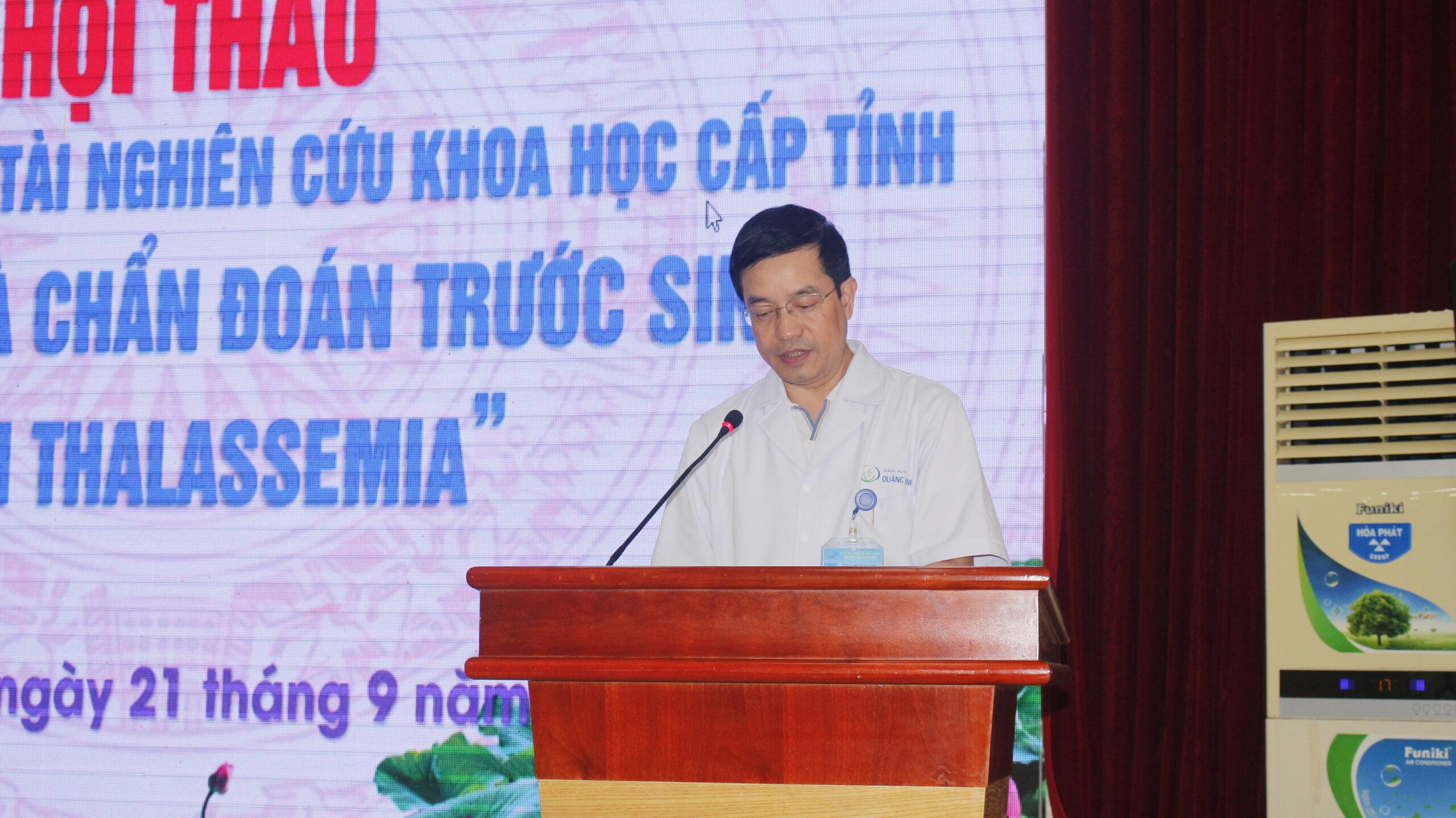 Nhằm nâng cao năng lực tư vấn, sàng lọc và chẩn đoán trước sinh bệnh Thalassemia theo Quyết định số 1535/QĐ-UBND ngày 15/5/2021 của UBND tỉnh; Chiều ngày 21/9 tại Hội trường 1, Bệnh viện Sản Nhi Quảng Ninh đã tổ chức buổi Hội thảo báo cáo kết quả đề tại nghiên cứu khoa học cấp tỉnh “Sàng lọc và chẩn đoán trước sinh bệnh Thalassemia” với sự tham gia và chủ trì của BSCKII. Đỗ Duy Long- Phó Giám đốc Bệnh viện cùng hơn 100 đại biểu là các trưởng phó, phụ trách khoa phòng, báo cáo viên và các y bác sĩ, đồng nghiệp tại bệnh viện và các điểm cầu trực tuyến tại các bệnh viện, trung tâm, trạm y tế trong toàn tỉnh tham dự