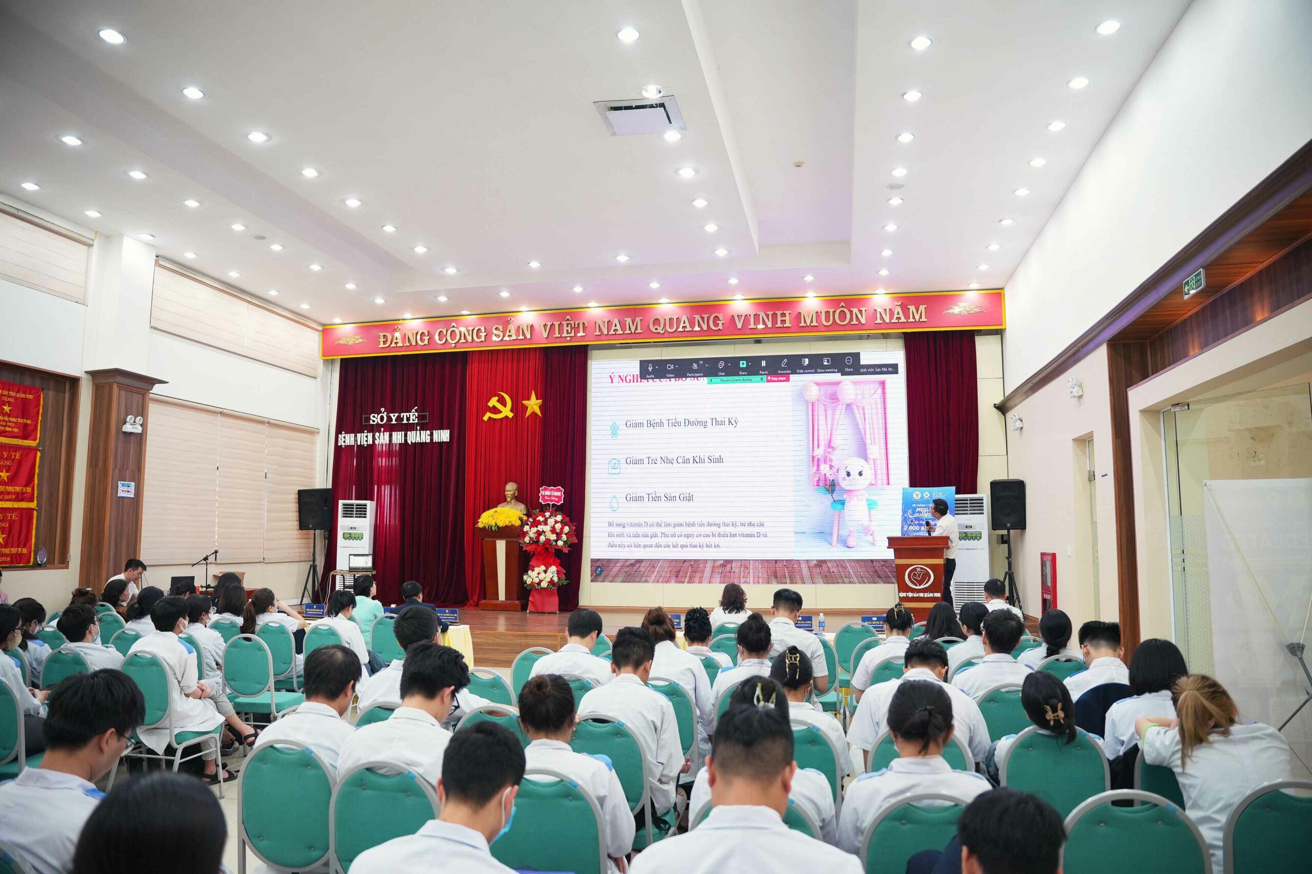 Chiều ngày 10/4, tại Hội trường lớn, Bệnh viện Sản Nhi Quảng Ninh phối hợp cùng Bệnh viện Đa khoa Medlatec tổ chức Hội thảo: “Cập nhập các xét nghiệm mới được ứng dụng trong lâm sàng”; Chương trinh có sự tham gia của PGS.TS Nguyễn Thái Sơn- Giám trung tâm xét nghiệm-Hệ thống Medlatec; Ths.BS Hoàng Thị Năng- Giám đốc Bệnh viện Đa khoa Medlatec; BSCKII Bùi Minh Cường- Giám đốc Bệnh viện Sản Nhi Quảng Ninh; Ths.BS Phạm Thị Hằng- PGĐ Bệnh viện Sản Nhi Quảng Ninh cùng các đồng chí lãnh đạo trung tâm, chi nhánh, trưởng phó khoa phòng, cán bộ y tế tại hai bệnh viện tại Hội trường và các tại điểm cầu trực tuyến của các đơn vị y tế trong toàn tỉnh.