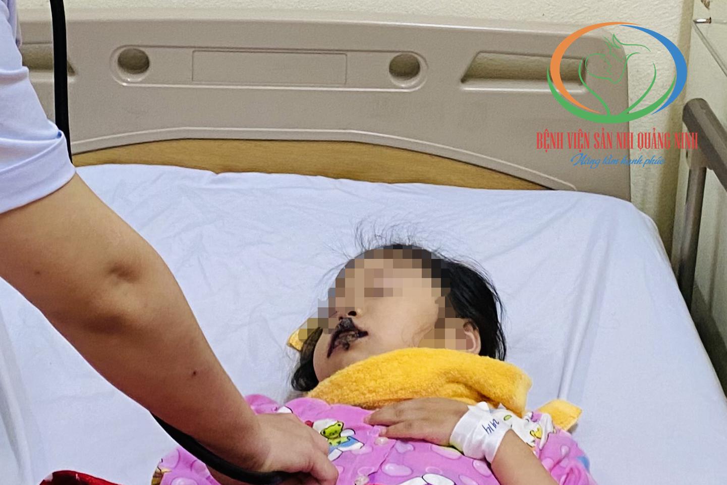 Theo lời kể của gia đình, trẻ đang chơi thì nhìn thấy lọ đựng hóa chất NaOH do anh trai mua về làm thí nghiệm nên cho vào miệng ăn vì tưởng nhầm là đường ăn, sau đó trẻ xuất hiện tình trạng trên, gia đình đã phát hiện và đưa đến bệnh viện Sản Nhi Quảng Ninh để điều trị.