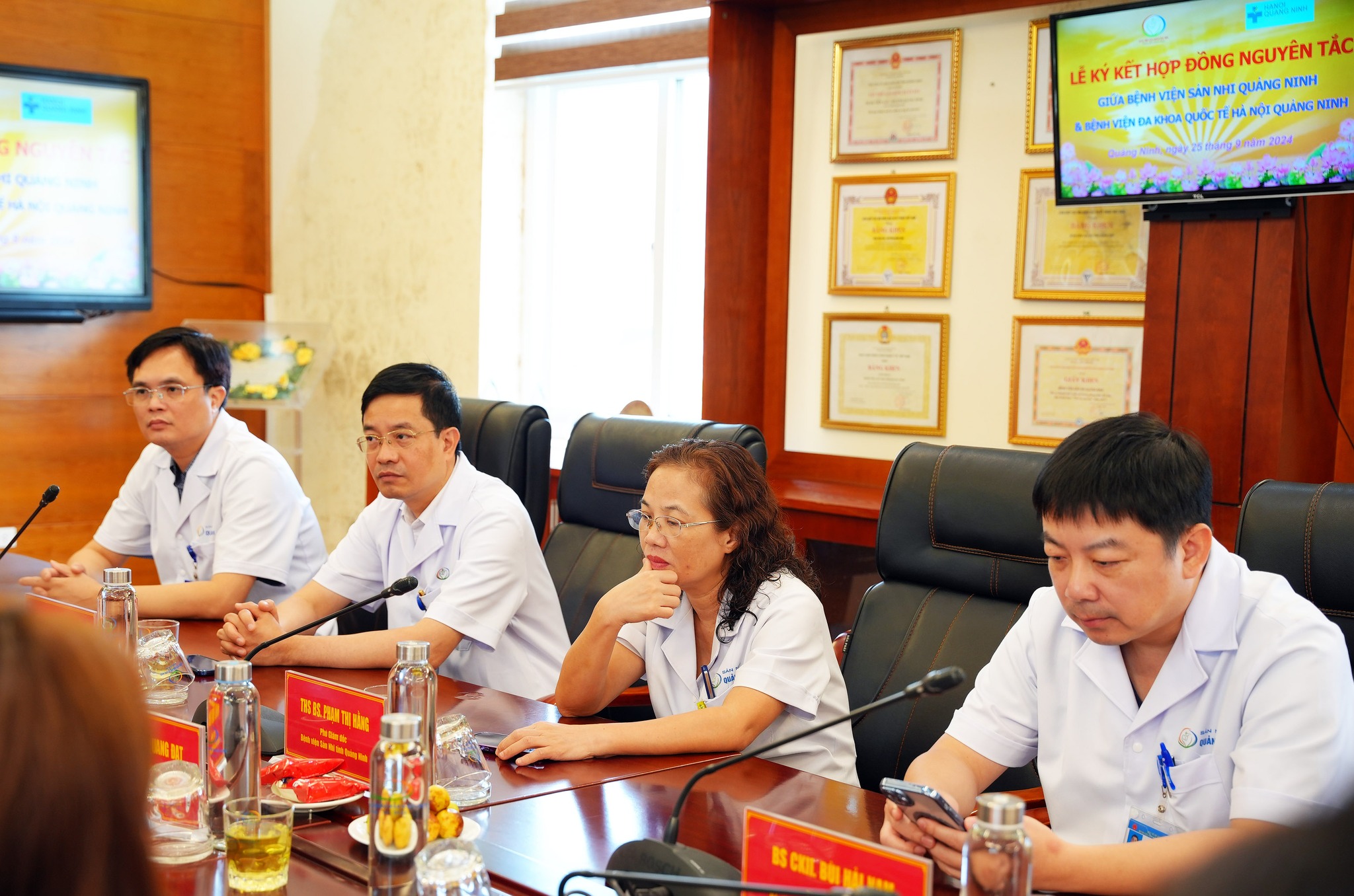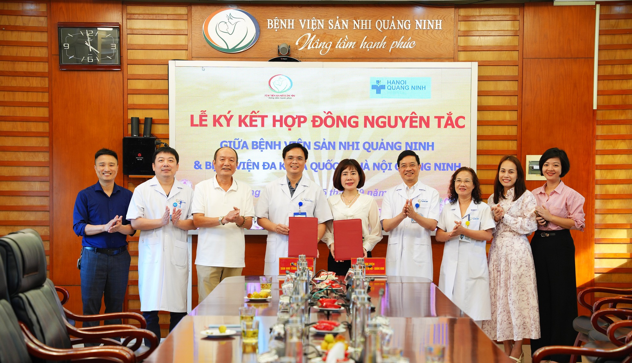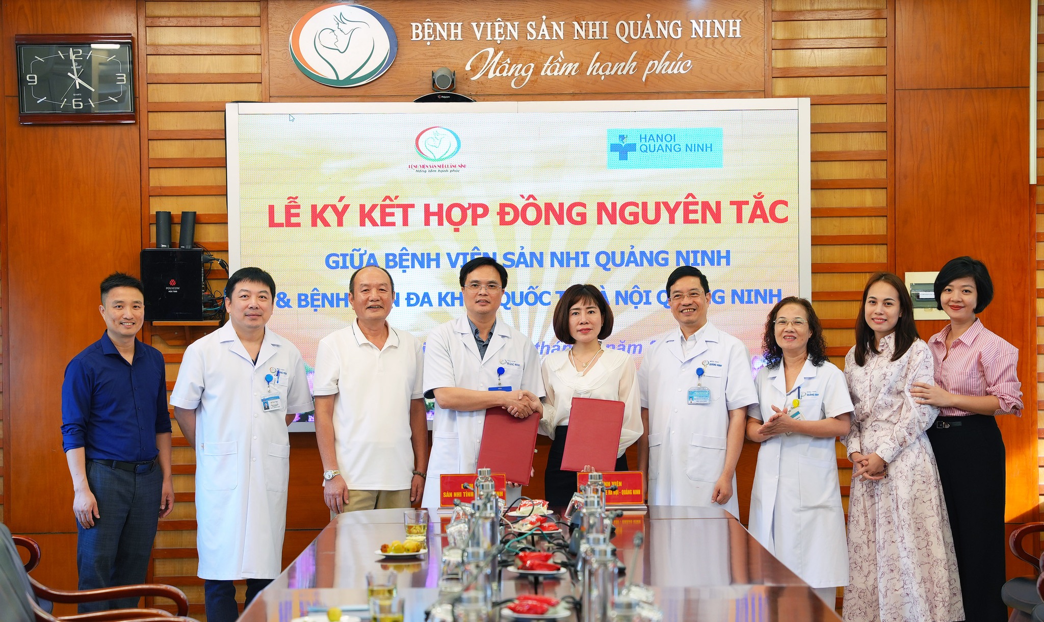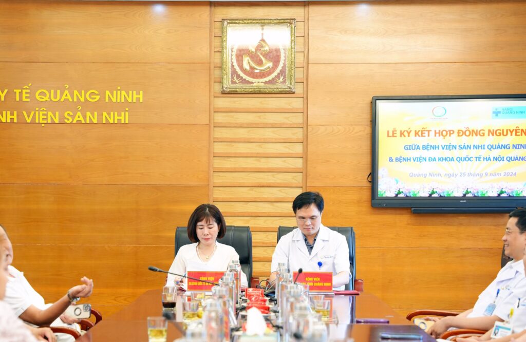 Chiều ngày 25/9/2024, tại Bệnh viện Sản Nhi Quảng Ninh đã diễn ra Lễ ký kết hợp đồng nguyên tắc nhằm hỗ trợ chuyên môn giữa Bệnh viện Sản Nhi Quảng Ninh và Bệnh viện đa khoa Quốc tế Hà Nội – Quảng Ninh. Tham dự chương trình có BSCKI. Nguyễn Thị Nga –Giám đốc Điều hành Bệnh viện đa khoa Quốc tế Hà Nội – Quảng Ninh; BSCKII Nguyễn Quốc Hùng – Giám đốc Chuyên môn và một số lãnh đạo chủ chốt của Bệnh viện đa khoa Quốc tế Hà Nội – Quảng Ninh.