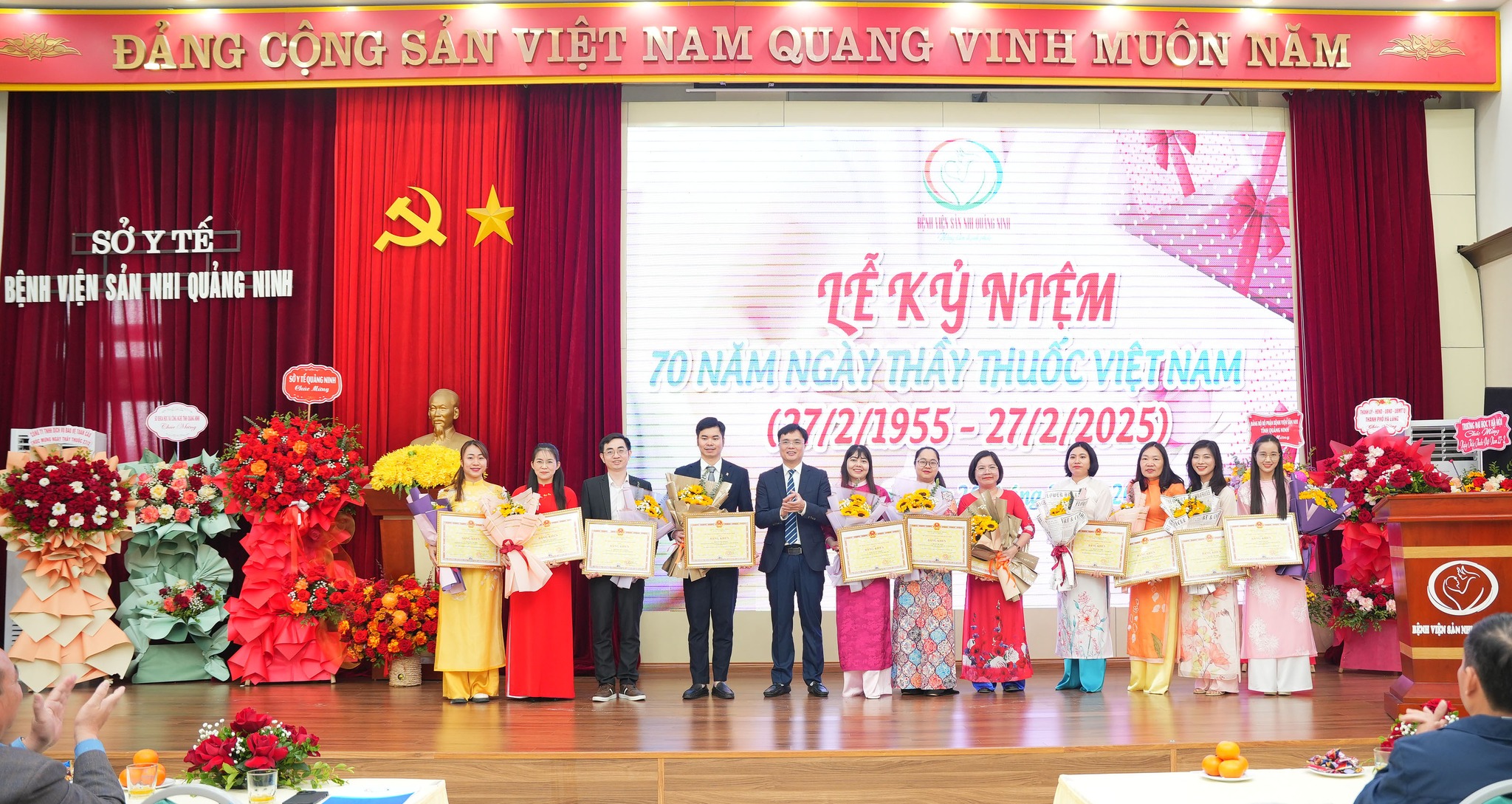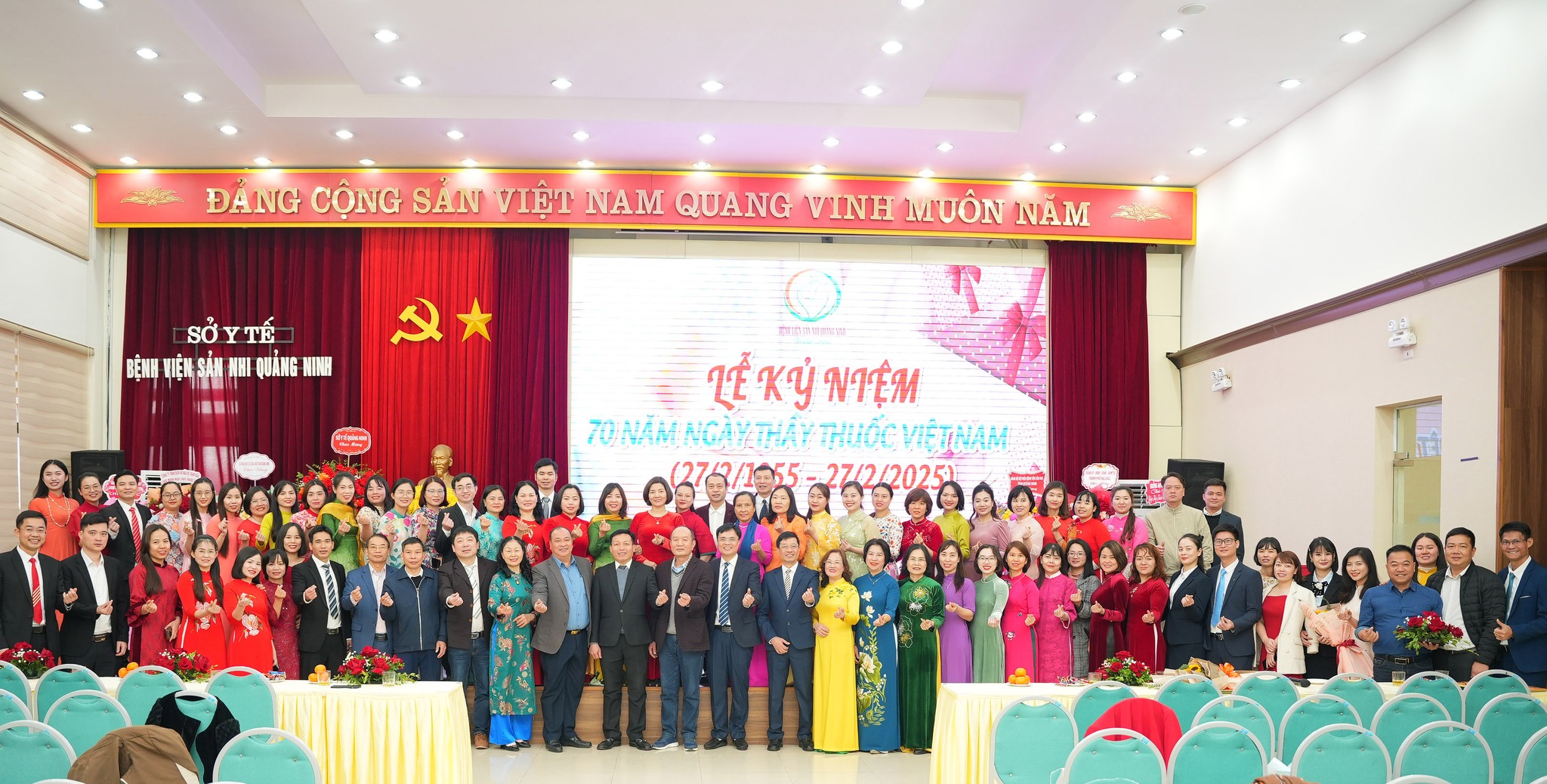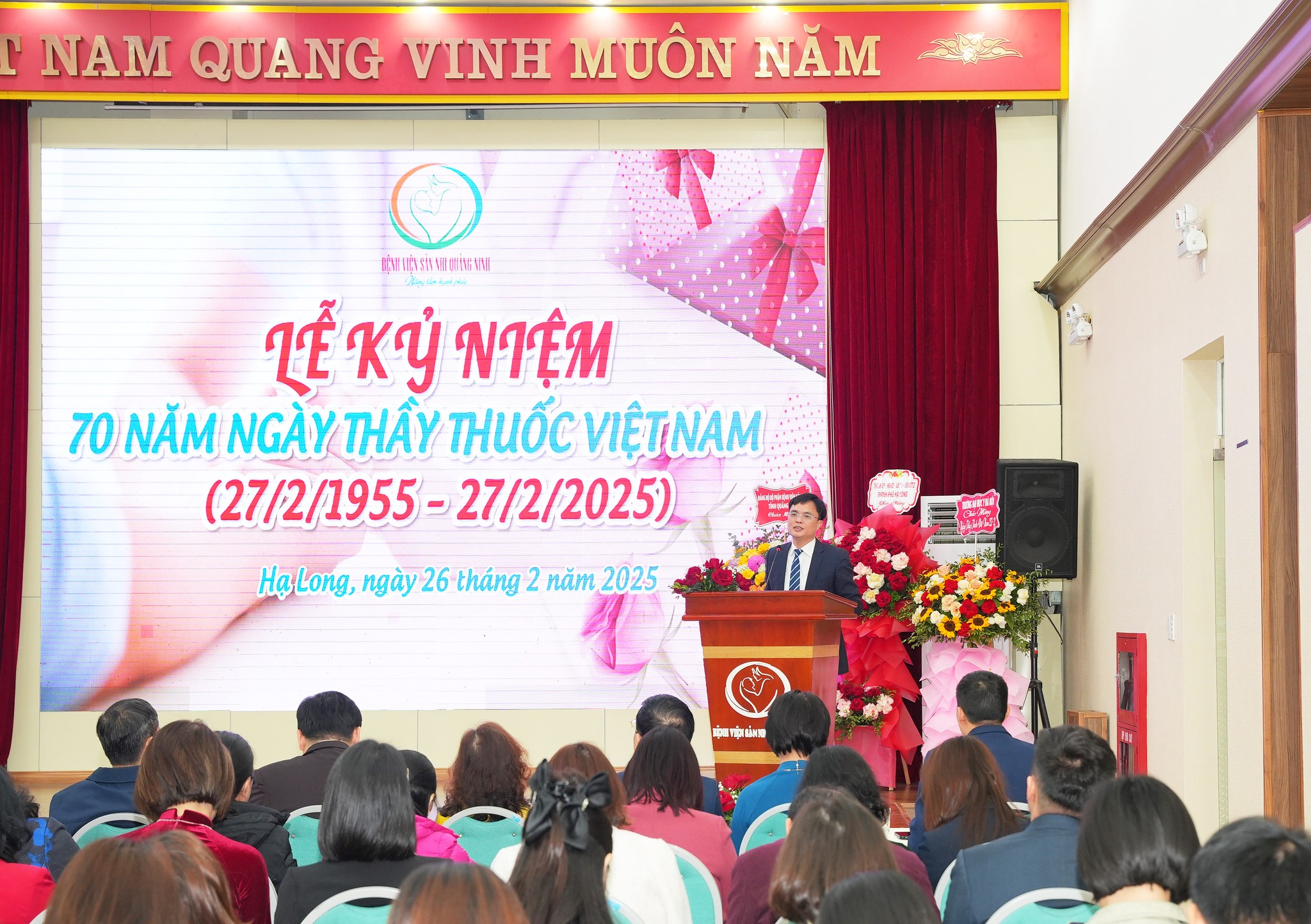 Sáng ngày 26/2, tại Hội trường lớn Bệnh viện Sản Nhi Quảng Ninh đã diễn ra Lễ Kỷ niệm, gặp mặt các đồng chí Lãnh đạo, nguyên lãnh đạo, các cán bộ, người lao động, nhân viên y tế của Bệnh viện nhân dịp Kỷ niệm 70 năm ngày Thầy thuốc Việt Nam (27/2/1955-27/2/2025) trong không khí trang trọng, phấn khởi và đầy tự hào.