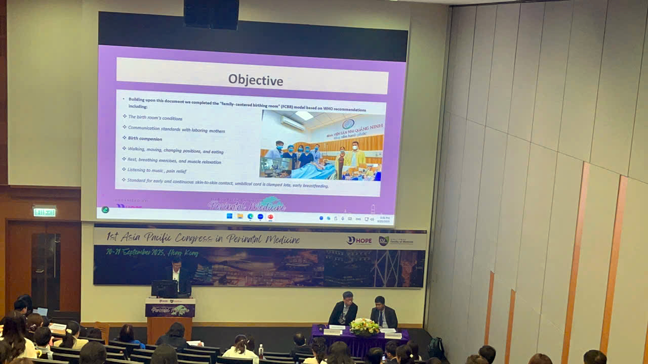 Mô hình”Phòng sinh thân thiện” tại Bệnh viện Sản Nhi Quảng Ninh được báo cáo tại Hội nghị khoa học Châu Á – Thái Bình Dương về Y học chu sinh lần thứ nhất (APCPM 2025) tổ chức tại Hồng Kông (Trung Quốc)