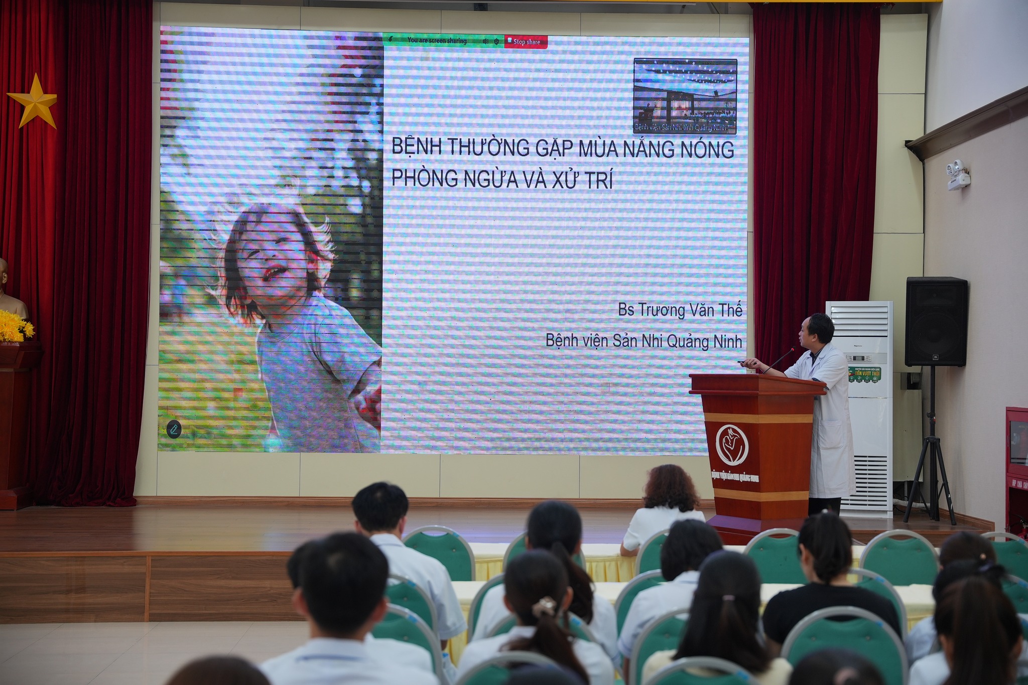 Qua các bài chia sẻ từ các giảng viên là các đồng chí trưởng, phó khoa giàu kinh nghiệm tại Bệnh viện Sản Nhi Quảng Ninh đã phân tích những nguyên tắc chung, các đặc điểm cụ thể, cách phòng tránh, phương pháp điều trị các bệnh thường gặp trong mùa hè; đồng thời, các giảng viên cũng nhấn mạnh các yếu tố quan trọng trong sơ cứu, xử trí, chăm sóc, hồi sức tích cực, phòng tránh tai nạn đuối nước và sốc nhiệt, đặc biệt là ở trẻ em khi xảy ra.
