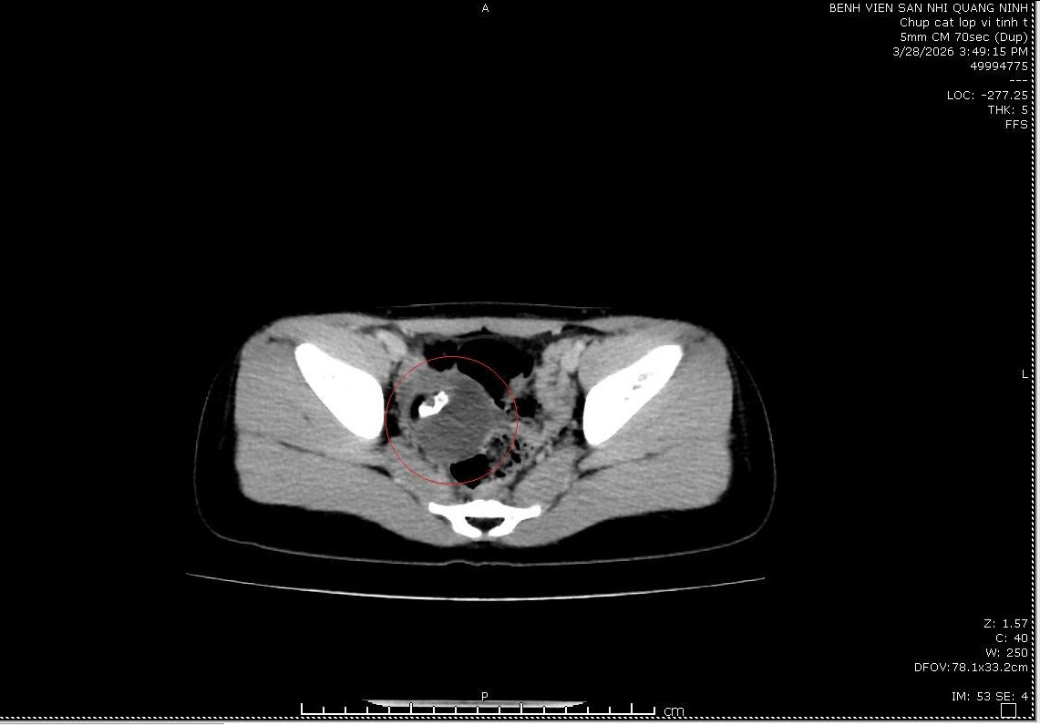 Các bác sĩ khoa Ngoại- Chuyên khoa, Bệnh viện Sản Nhi Quảng Ninh vừa tiếp nhận và phẫu thuật nội soi điều trị kịp thời cho bé P.T.Tr (9 tuổi) nhập viện cấp cứu vì đau bụng nhiều, từng cơn vùng hạ vị kèm nôn nhiều. Trước đó, cháu bé xuất hiện đau bụng hạ vị âm ỉ, sau trội thành cơn, đi ngoài phân lỏng 1 lần/ ngày, nôn nhiều, chưa hành kinh.