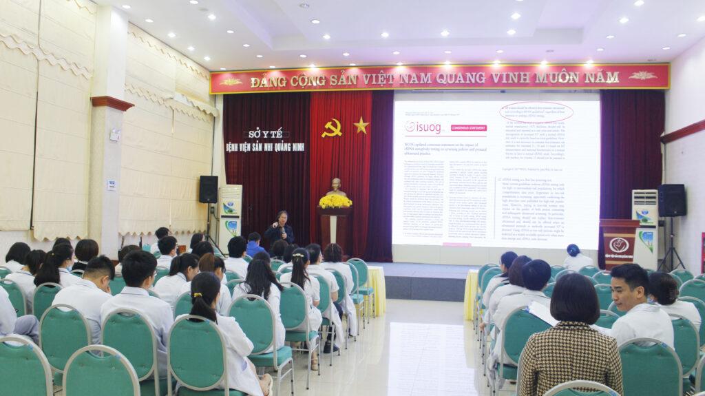 Sáng ngày 05/12, Bệnh viện Sản Nhi Quảng Ninh (BVSNQN) phối hợp với Bệnh viện Phụ sản Hà Nội (BVPSHN) tổ chức chương trình Sinh hoạt khoa học với hai chủ đề “Sàng lọc tiền sản giật thai kỳ 3 tháng đầu thai kỳ và NIPT mở rộng, góc nhìn từ lâm sàng ”,