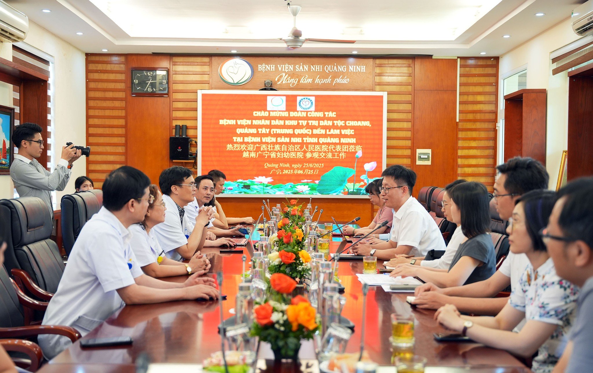 Ngày 25/6, tại bệnh viện Sản Nhi Quảng Ninh, Đoàn công tác Bệnh viện Nhân dân khu tự trị dân tộc Choang, Quảng Tây (Trung Quốc) do ông do ông Lý Kiện – Giám đốc Bệnh viện làm trưởng đoàn cùng các chuyên gia y tế đã đến thăm, làm việc và trao đổi kinh nghiệm, các cơ hội hợp tác y tế toàn diện giữa hai Bệnh viện. Đây là hoạt động nằm trong khuôn khổ hợp tác y tế giữa Sở Y tế tỉnh Quảng Ninh và Ủy ban y tế Quảng Tây nhằm tăng cường hợp tác chuyên môn, đào tạo nhân lực, nghiên cứu khoa học và chuyển giao kỹ thuật.