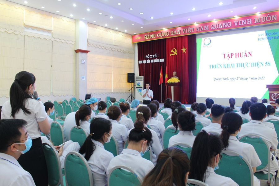 Chiều ngày 27/7/2022, tại Bệnh viện Sản Nhi Quảng Ninh, phòng Quản lý chất lượng Chăm sóc khách hàng bệnh viện tổ chức lớp Tập huấn tiếp tục thực hiện 5S cho toàn thể nhân viên mới. Đây là chương trình thường niên của bệnh viện nhằm trao đổi, cập nhập kiến thức, duy trì các hoạt động để tạo ra một môi trường làm việc gọn gàng, sạch sẽ; tăng hiệu quả công việc, giảm thiểu tối đa những rủi ro với công tác điều trị và chăm sóc người bệnh.