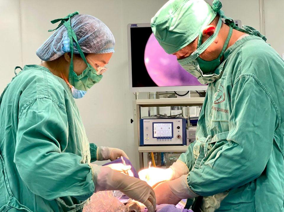 Dù đã có quyết định nghỉ hưu nhưng với vai trò trách nhiệm là một bác sĩ TTND, BSCKII Nguyễn Quốc Hùng vẫn tích cực tham gia trực tiếp khám chữa bệnh, đào tạo, tập huấn và hướng dẫn các ca phẫu thuật khó tại bệnh viện.