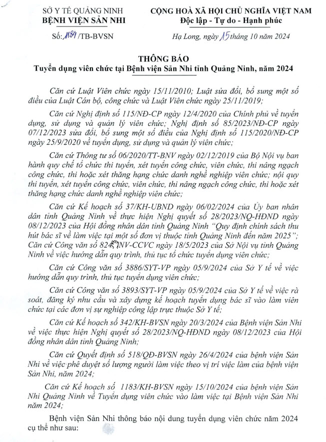Thông tin chi tiết Thông báo tuyển dụng năm 2024: 1184.Tb tuyển dụng viên chức_0001